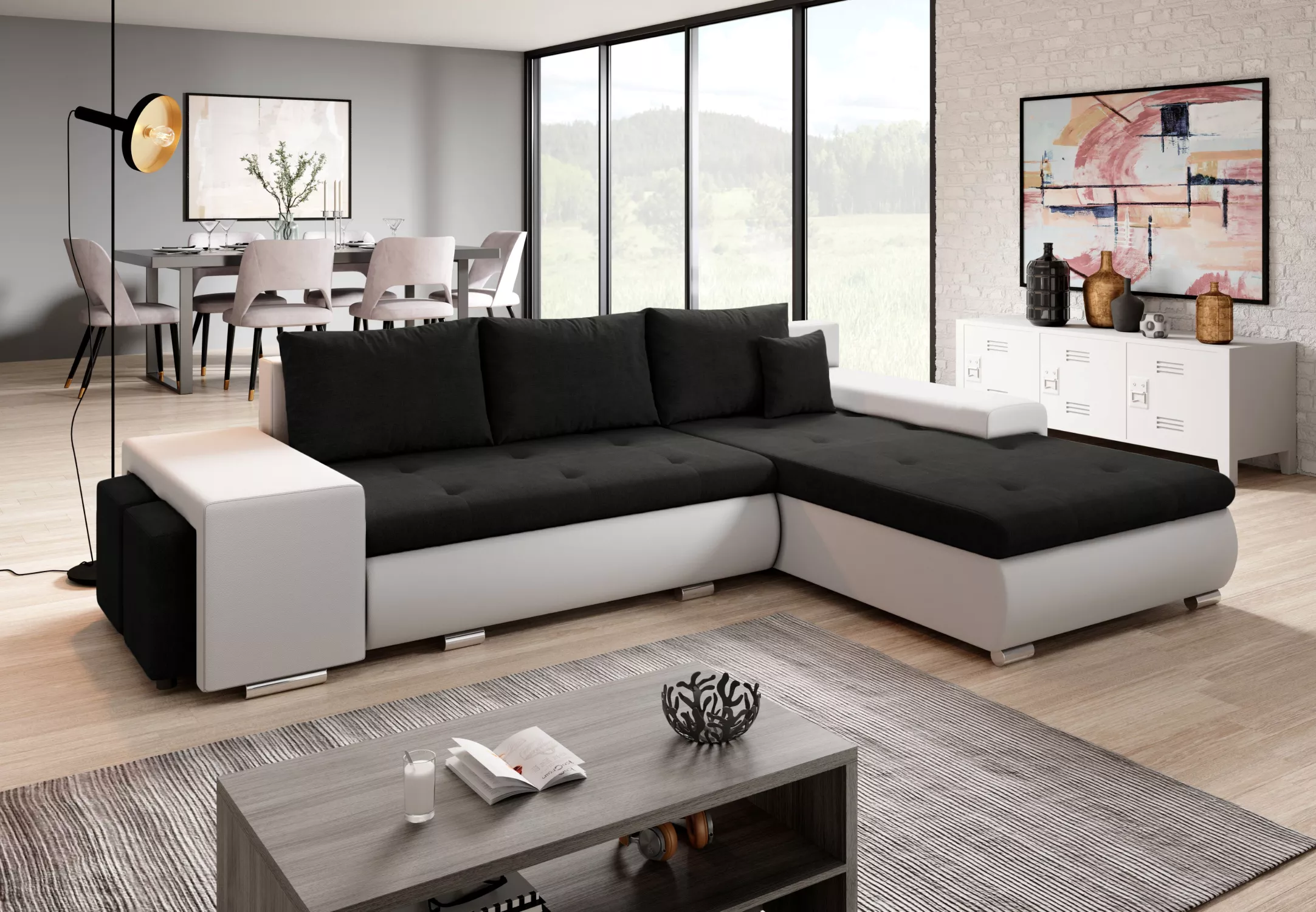 Sedací souprava s taburety EDERA MINI - bílá / černá