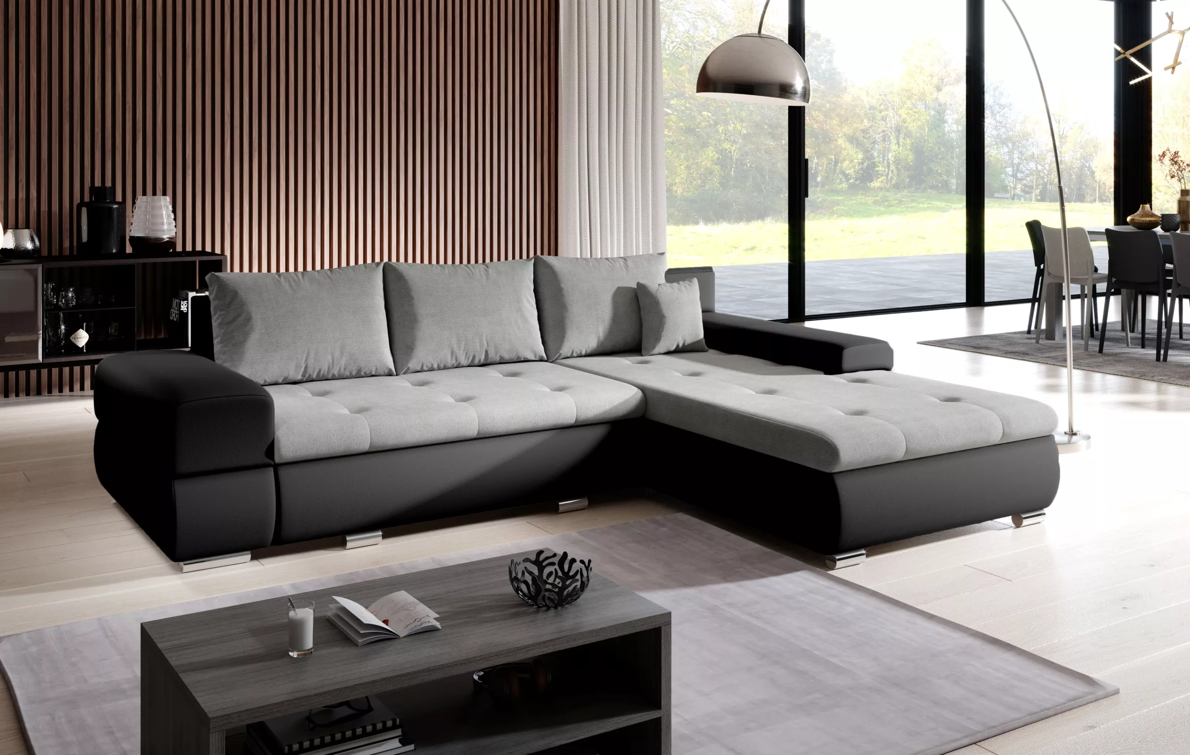 Rohová sedací souprava EDERA MINI je vyrobena z vysoce kvalitních a odolných materiálů. Výhodou je rozkládací funkce, díky které vytvoříte místo k přespání pro vaši návštěvu. Sedačka také disponuje úložným prostorem.