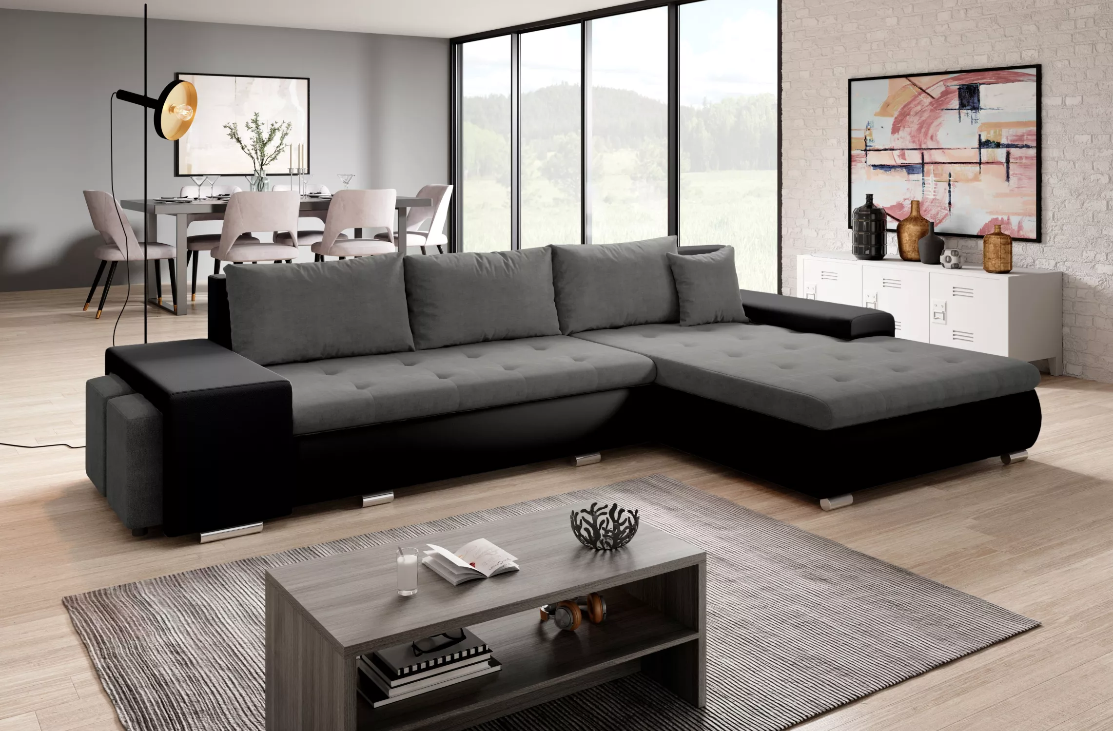Rohová sedací souprava s taburety EDERA - černá / tmavě šedá