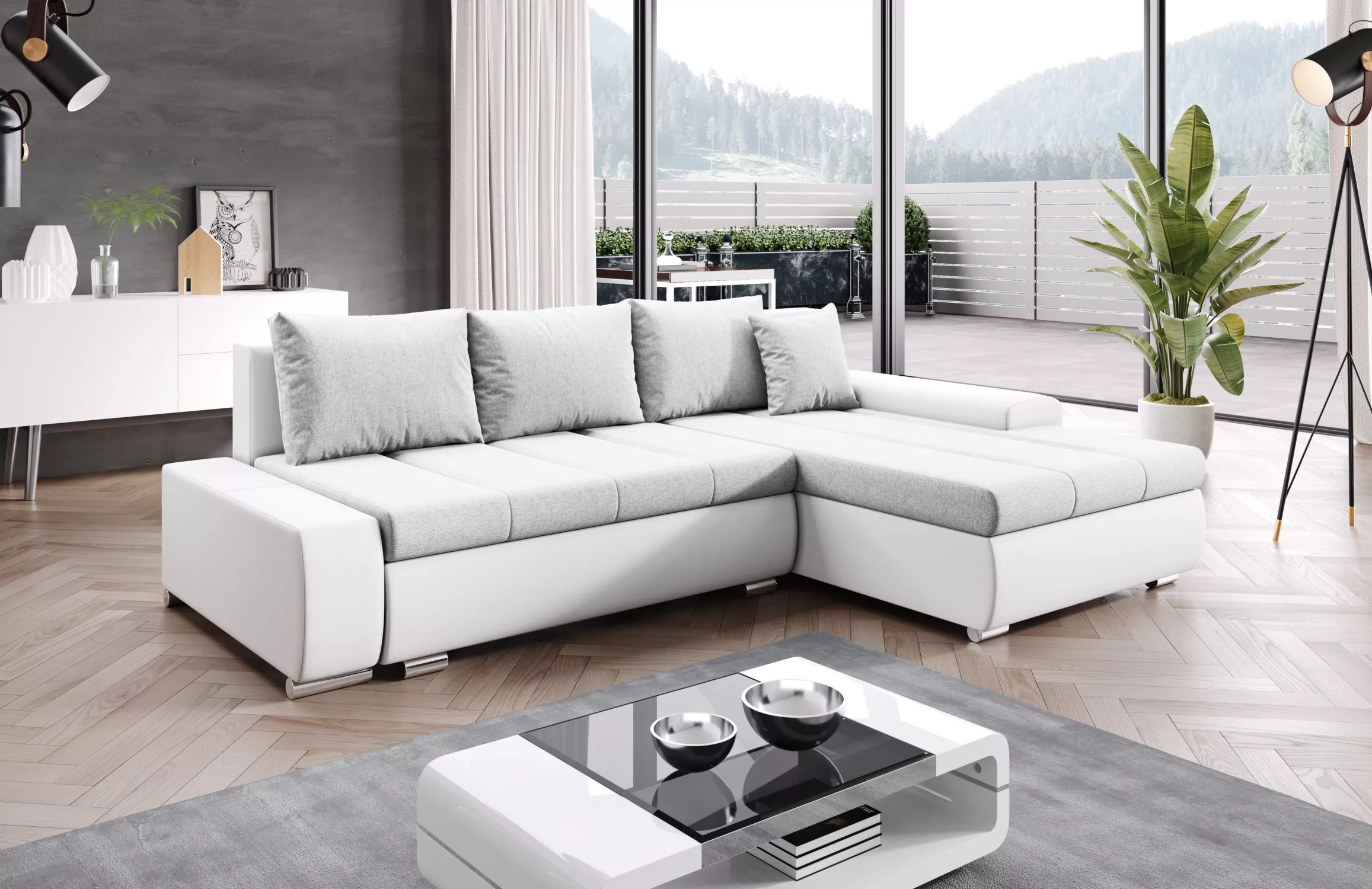 Sedací souprava s úložným prostorem CANDIDA - bílá / světle šedá
