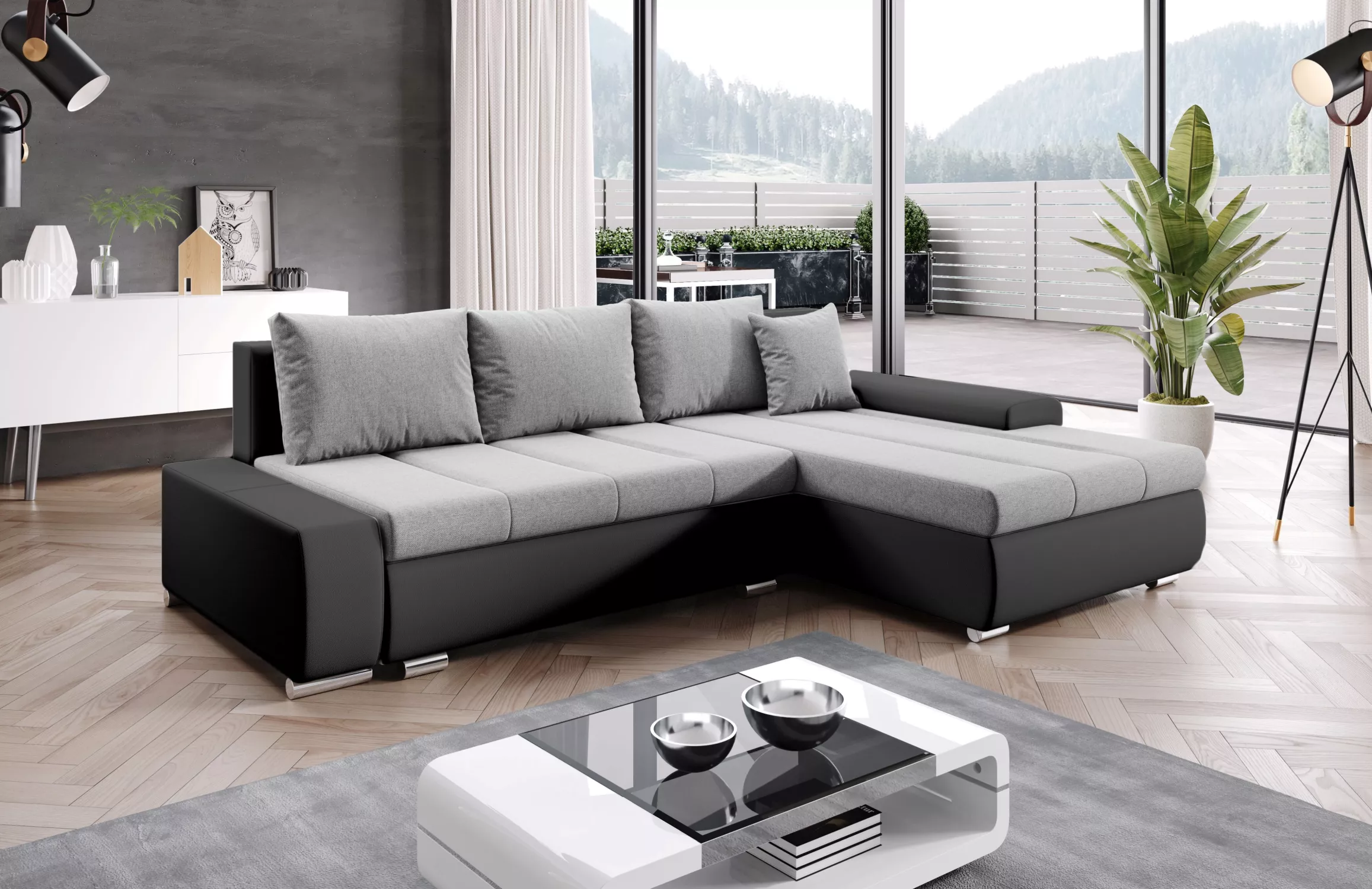 Sedací souprava s úložným prostorem CANDIDA - černá / šedá