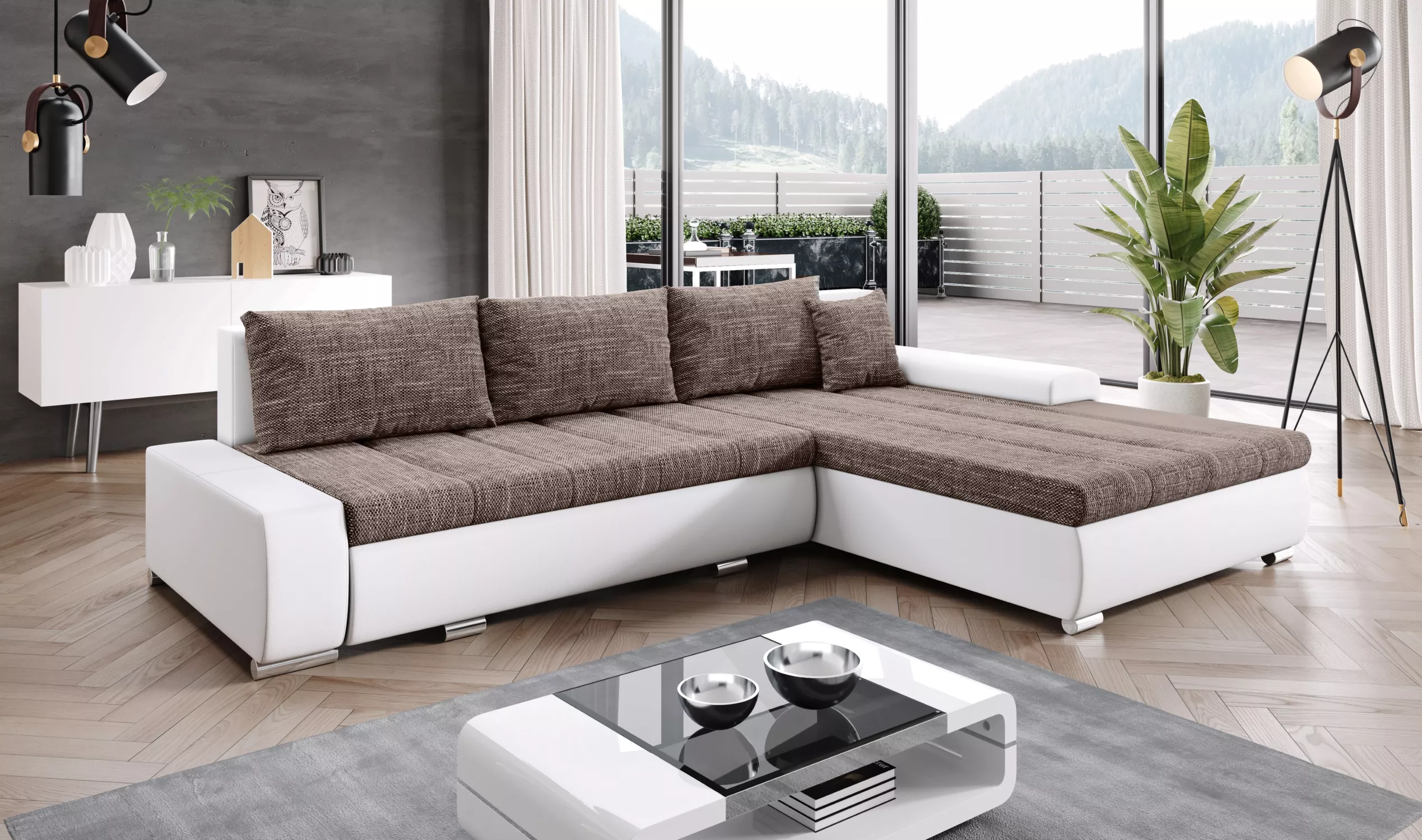 Rohová rozkládací sedačka CARLINA - bílá / hnědá