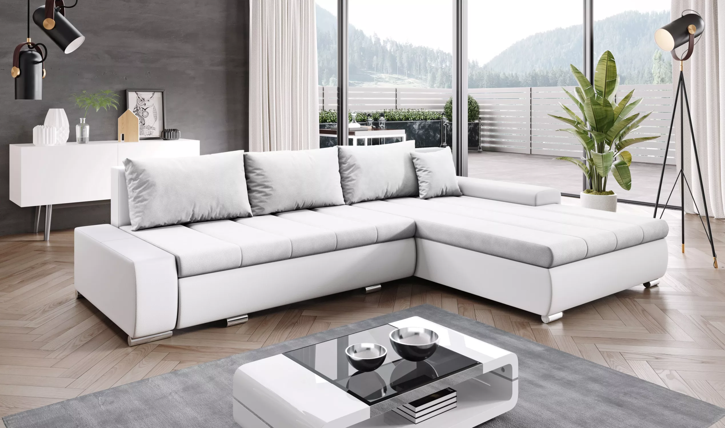 Rohová rozkládací sedačka CARLINA se vyznačuje moderním designem s hlubokým prošíváním a vysokým komfortem. Opěradlo tvoří volně ložené polštáře, které zpříjemní váš každodenní odpočinek. Zadní část sedačky je čalouněná látkou, což umožňuje její umístění kdekoli v místnosti.
