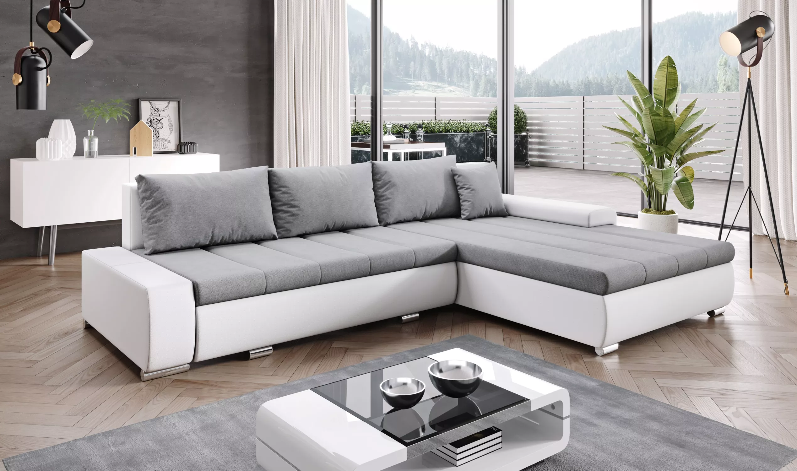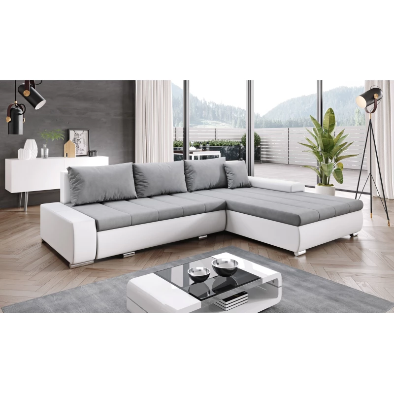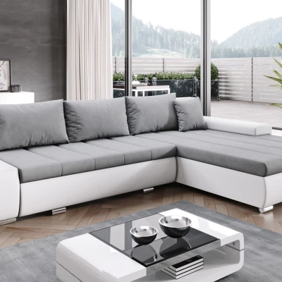 Rohová rozkládací sedačka CARLINA - bílá / šedá