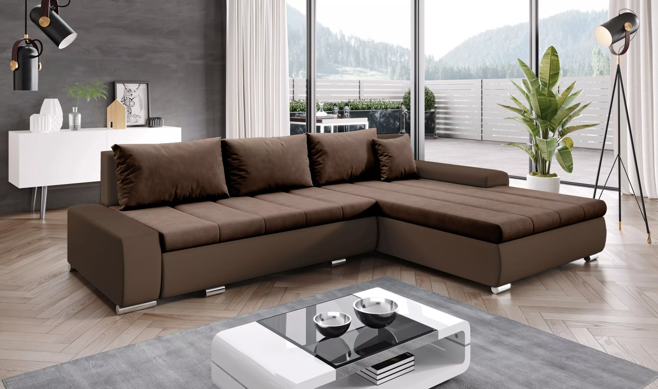 Rohová rozkládací sedačka CARLINA - tmavě hnědá / čokoládová