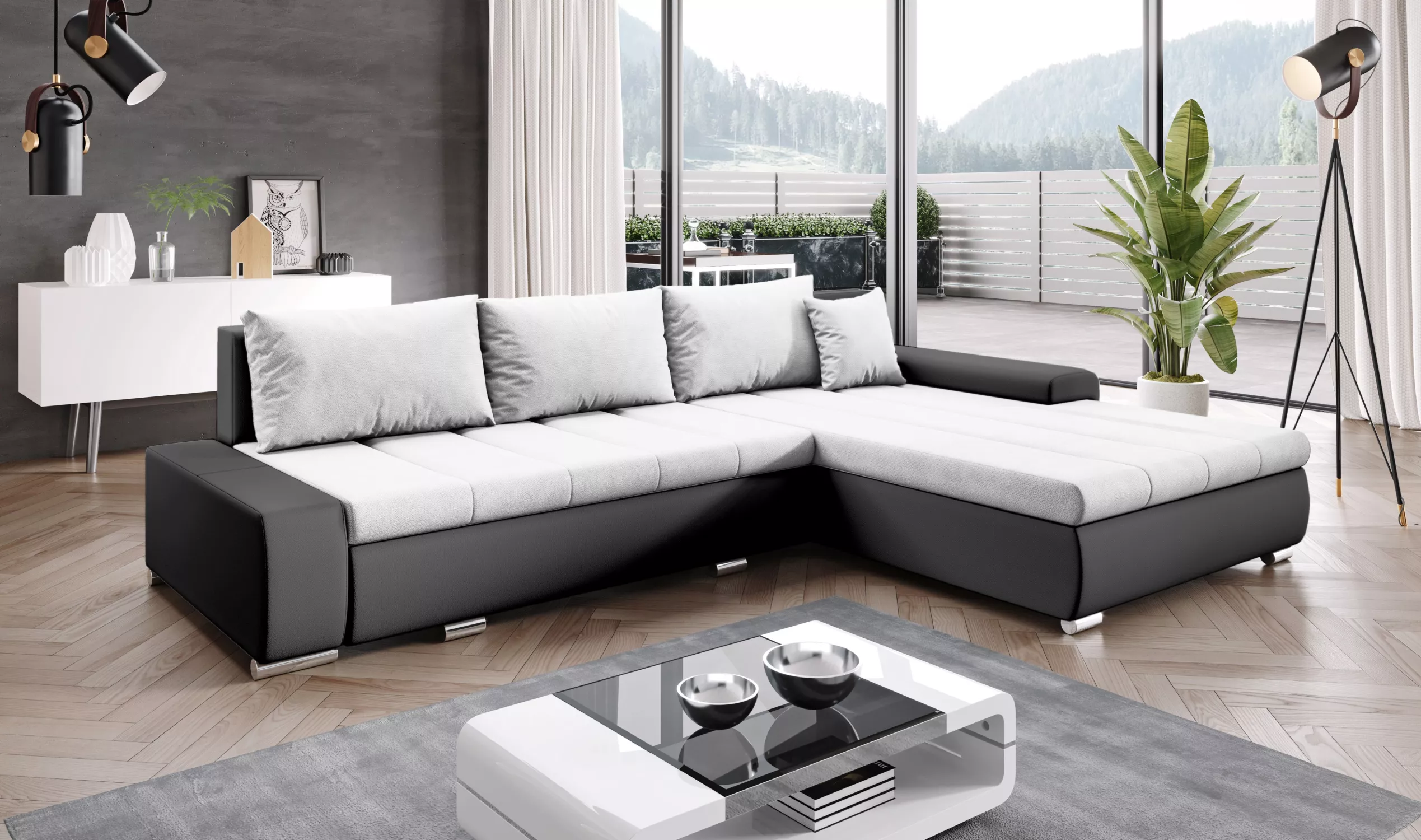 Rohová rozkládací sedačka CARLINA - černá / bílá