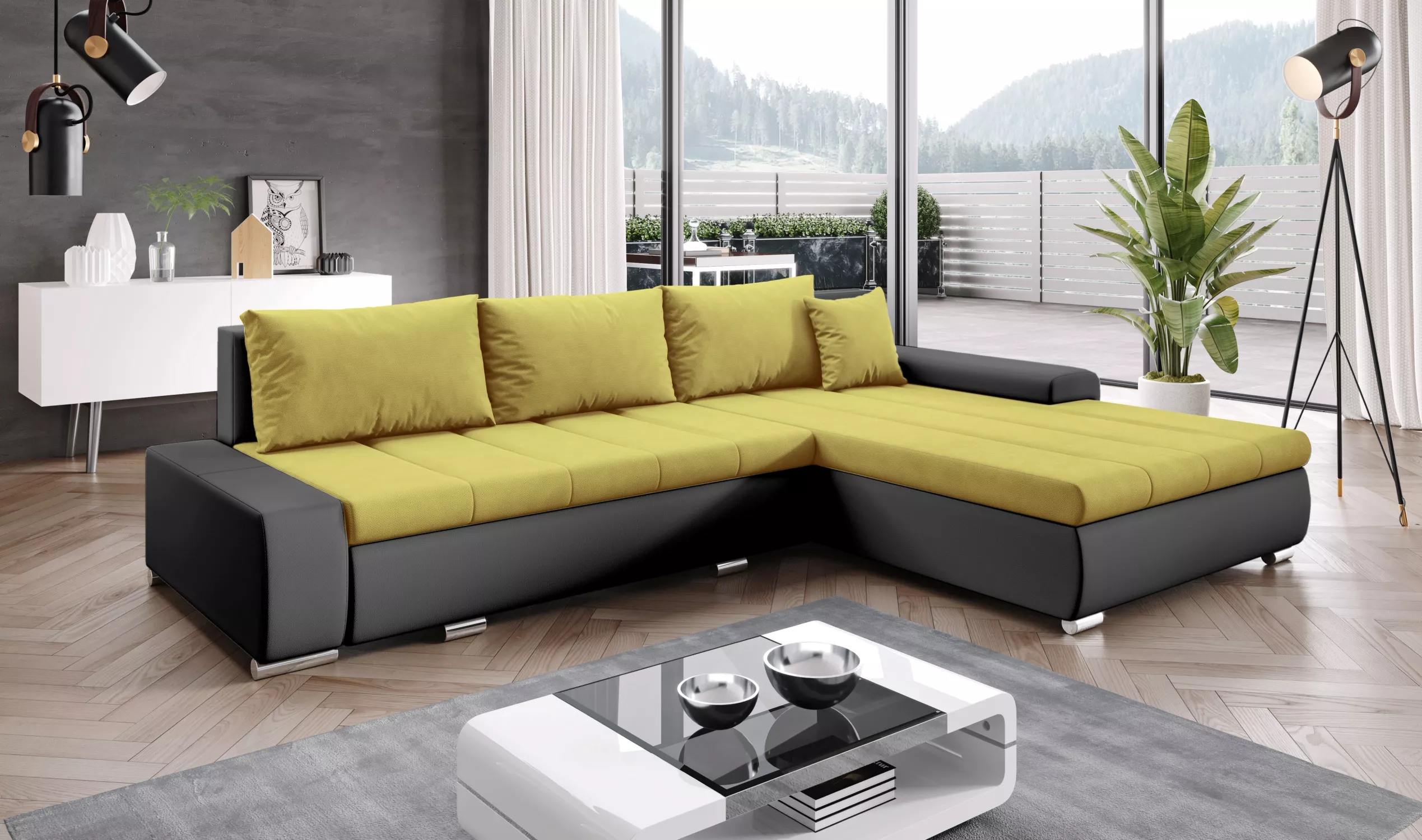Rohová rozkládací sedačka CARLINA - černá / žlutá