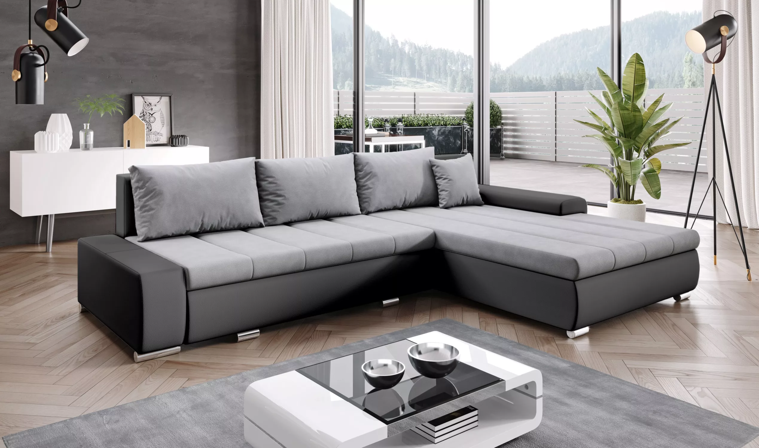 Rohová rozkládací sedačka CARLINA - černá / šedá