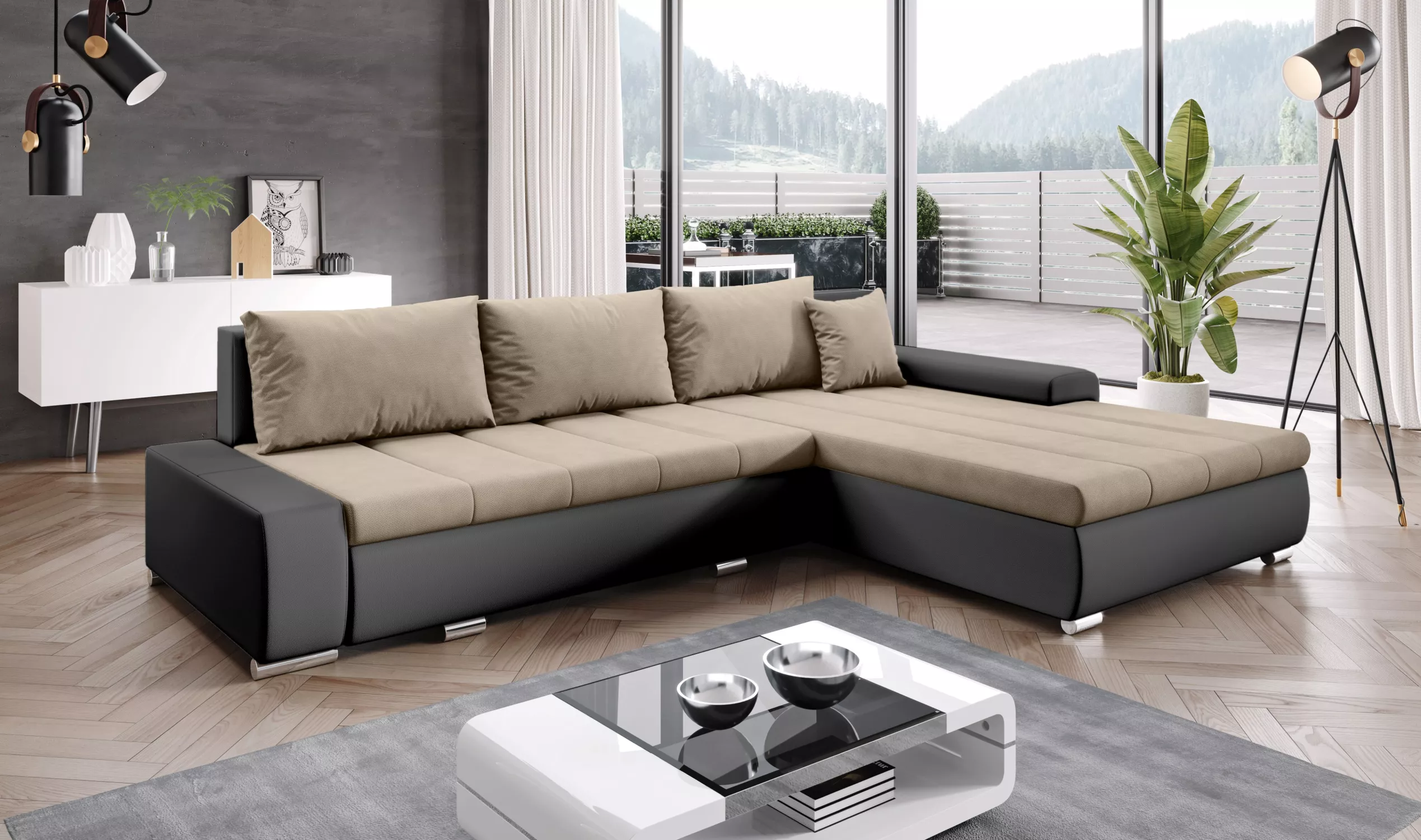 Rohová rozkládací sedačka CARLINA - černá / světle hnědá