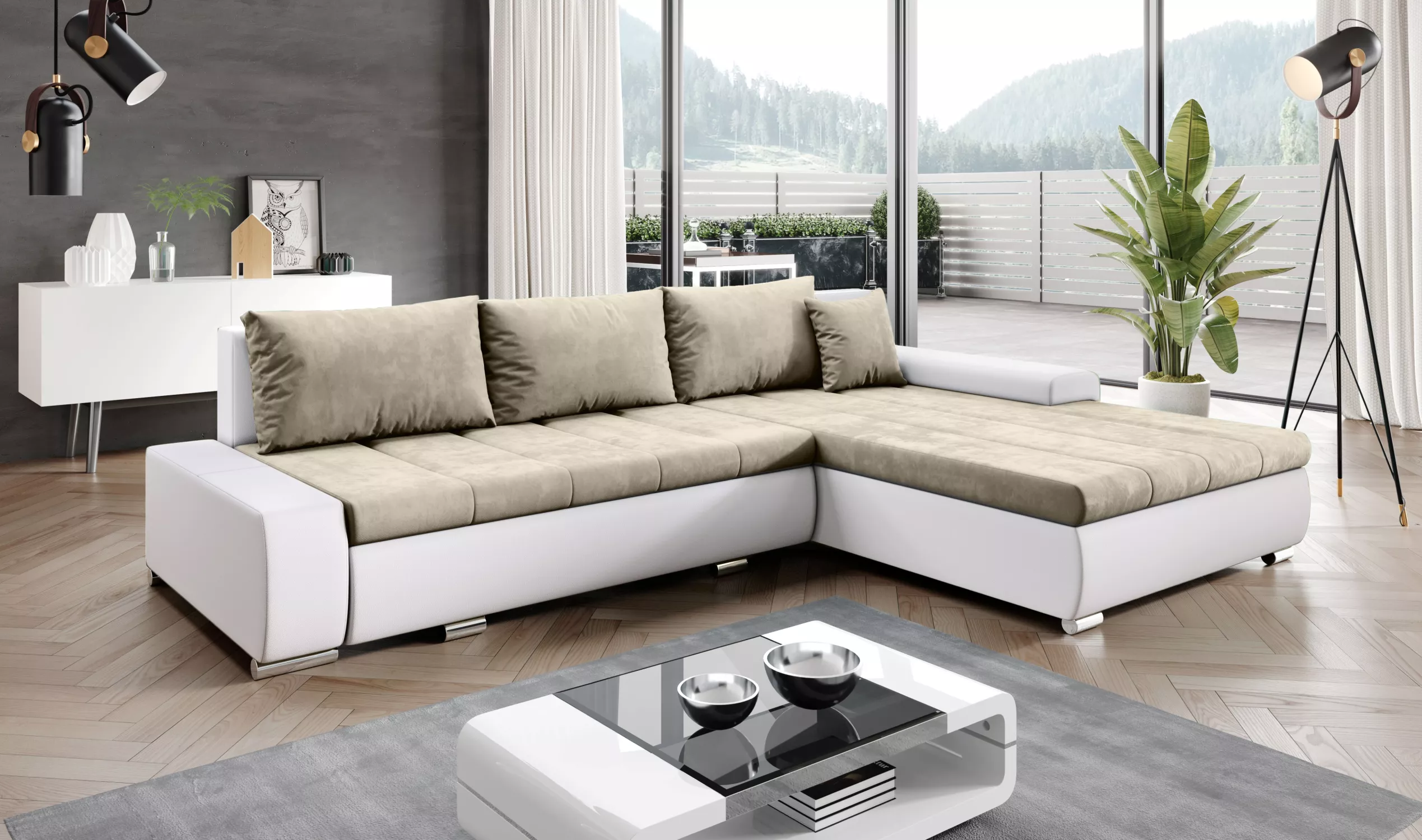 Rohová rozkládací sedačka CARLINA - bílá / béžová