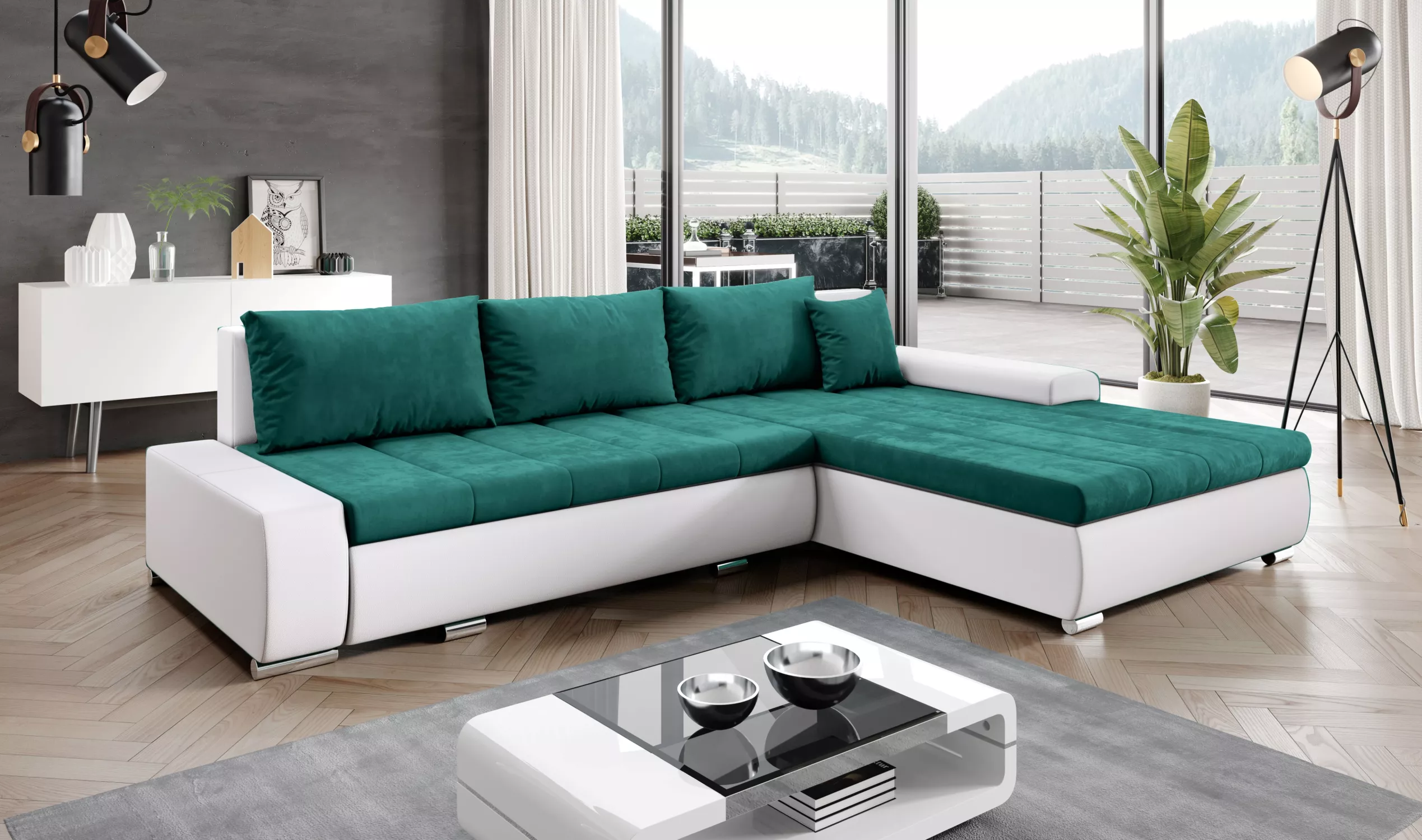 Rohová rozkládací sedačka CARLINA - bílá / zelená