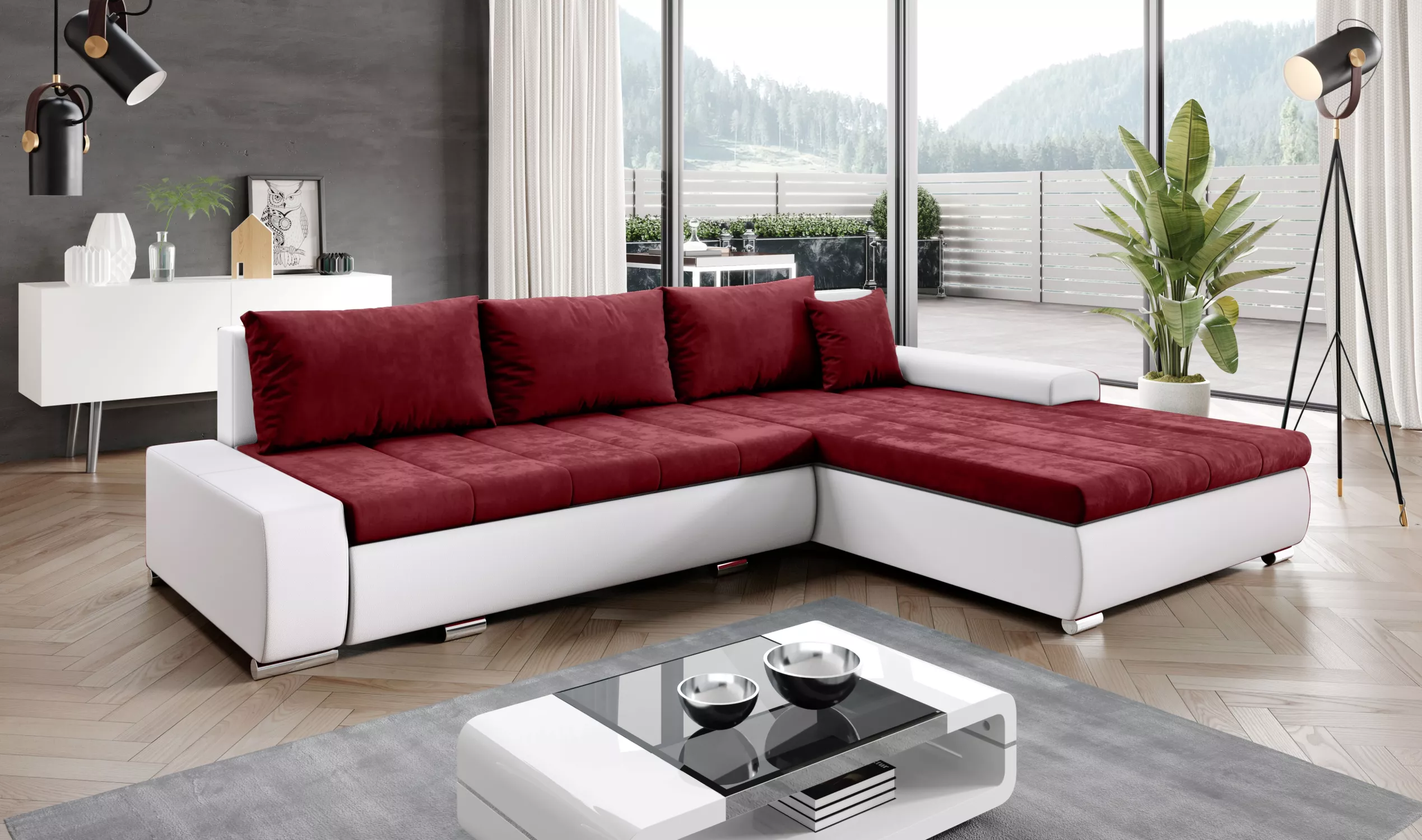 Rohová rozkládací sedačka CARLINA - bílá / červená