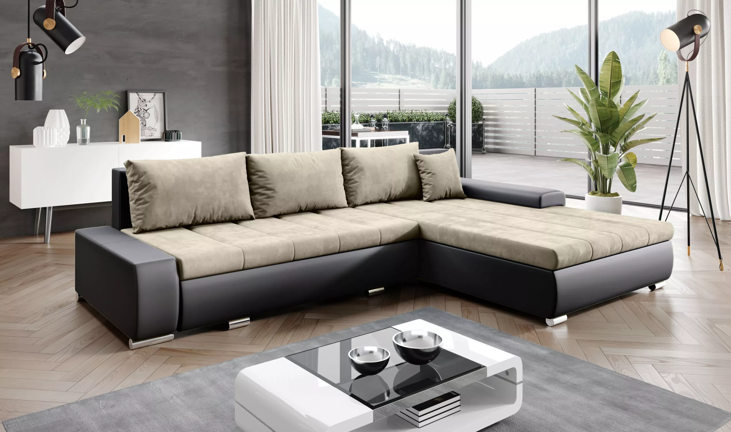 Rohová rozkládací sedačka CARLINA - černá / béžová