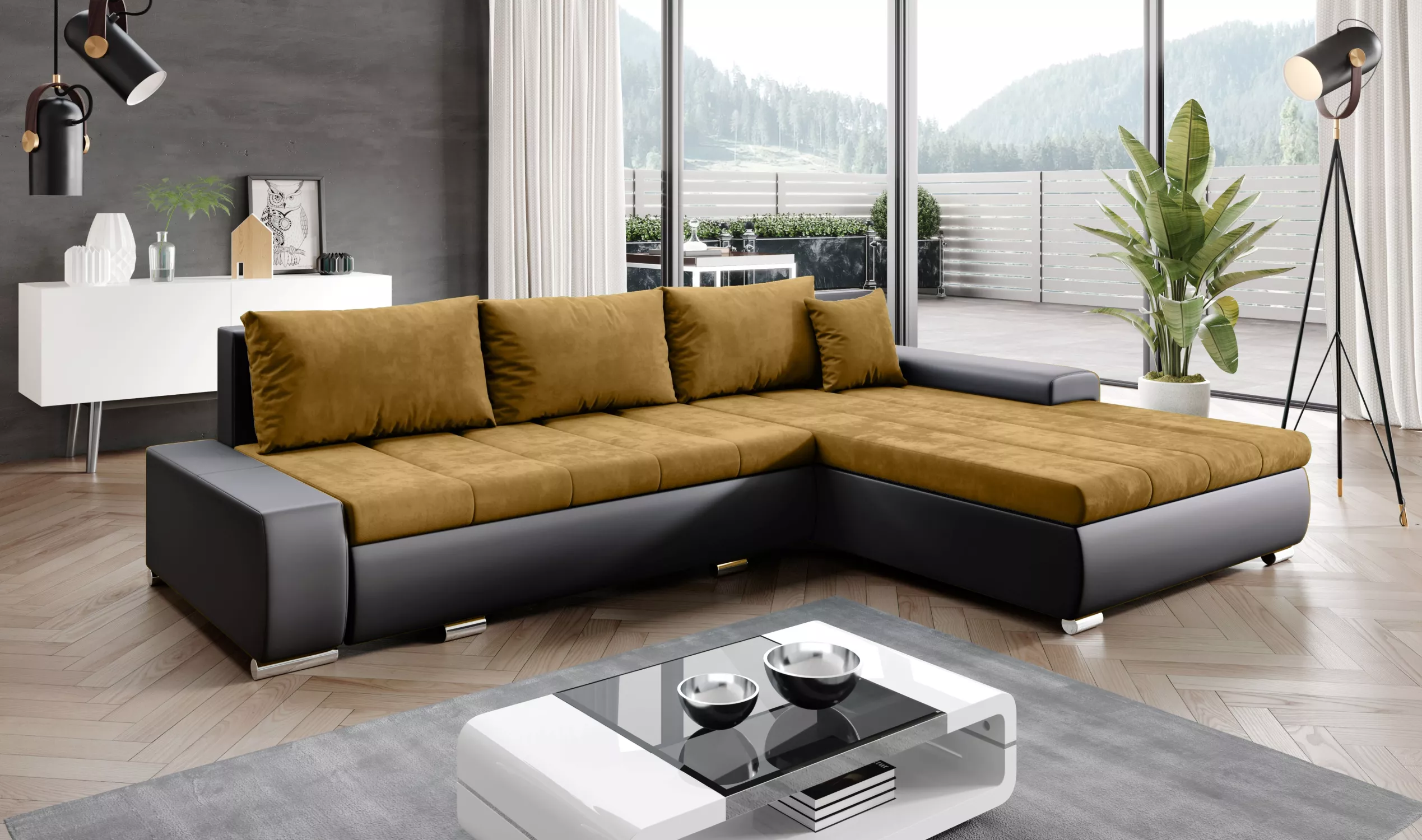 Rohová rozkládací sedačka CARLINA - černá / hořčicová