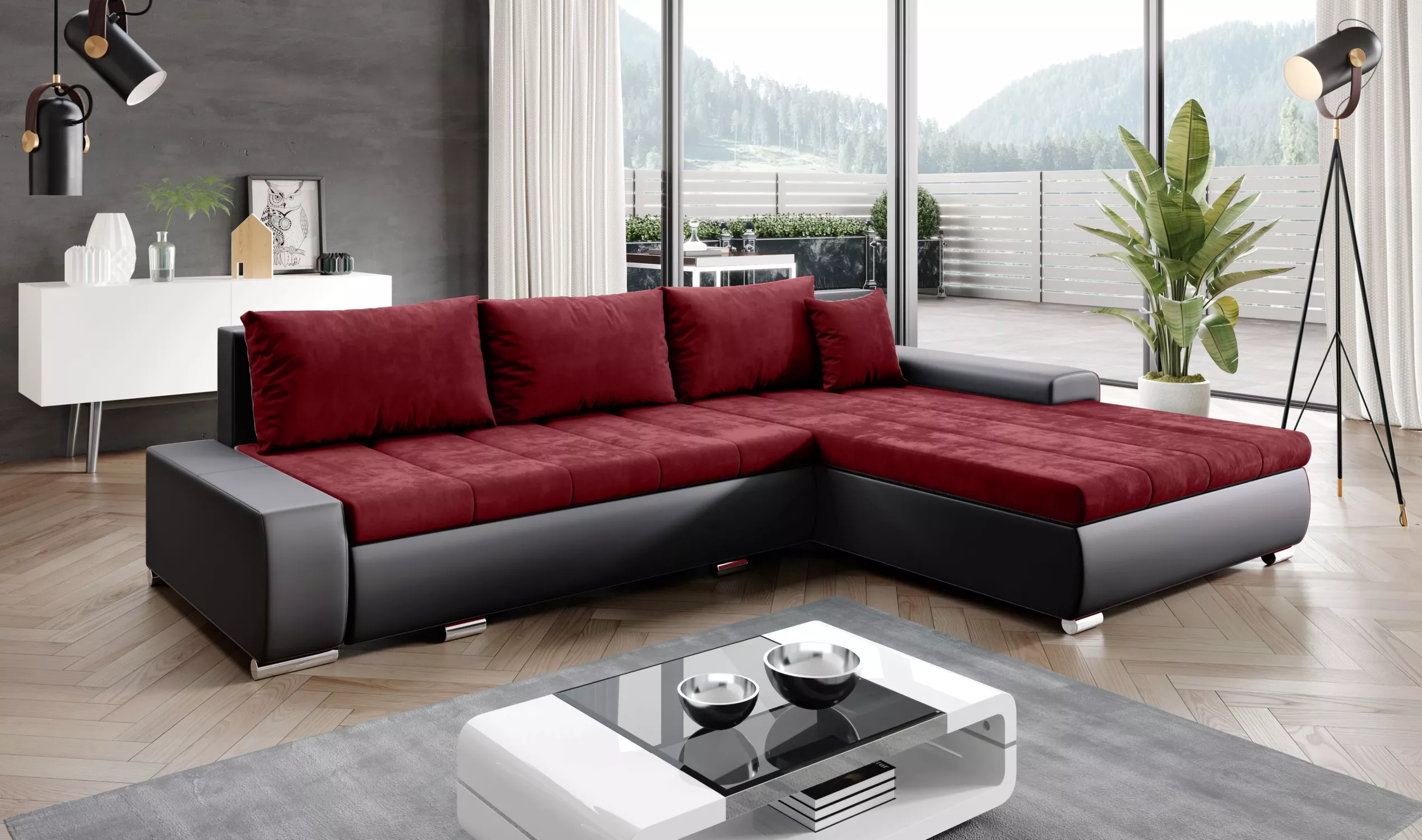 Rohová rozkládací sedačka CARLINA - černá / červená