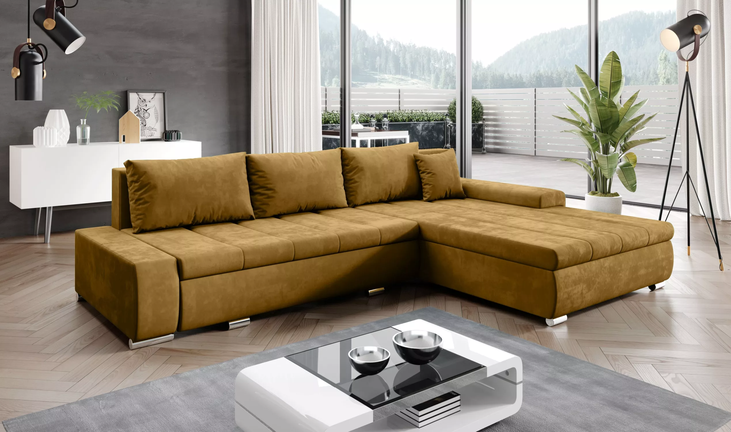 Rohová rozkládací sedačka CARLINA - hořčicová