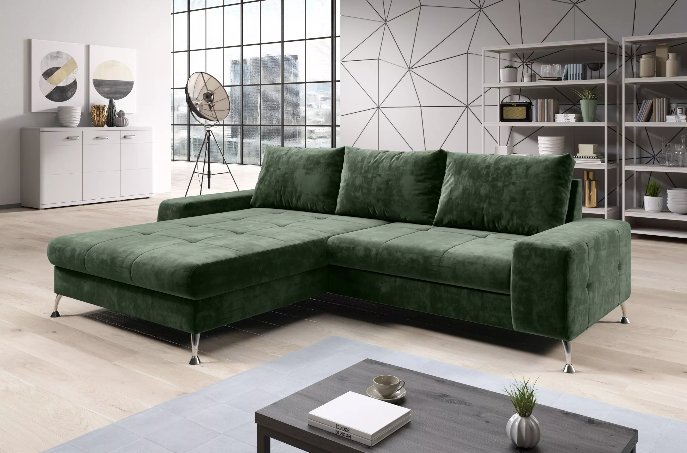 Stylová rozkládací sedačka CHRISTINE - tmavě zelená, levý roh