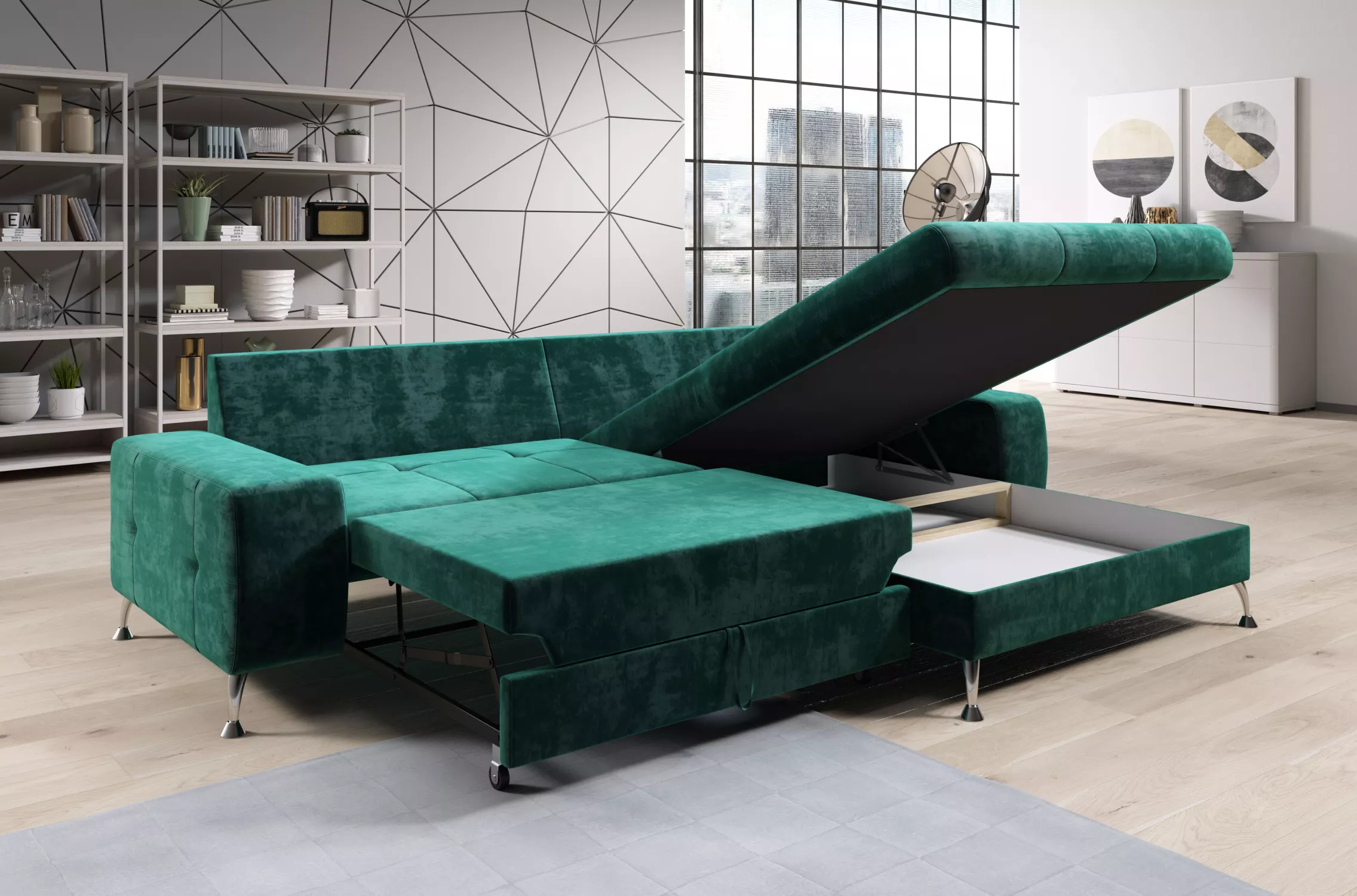 Stylová rozkládací sedačka CHRISTINE - zelená, levý roh