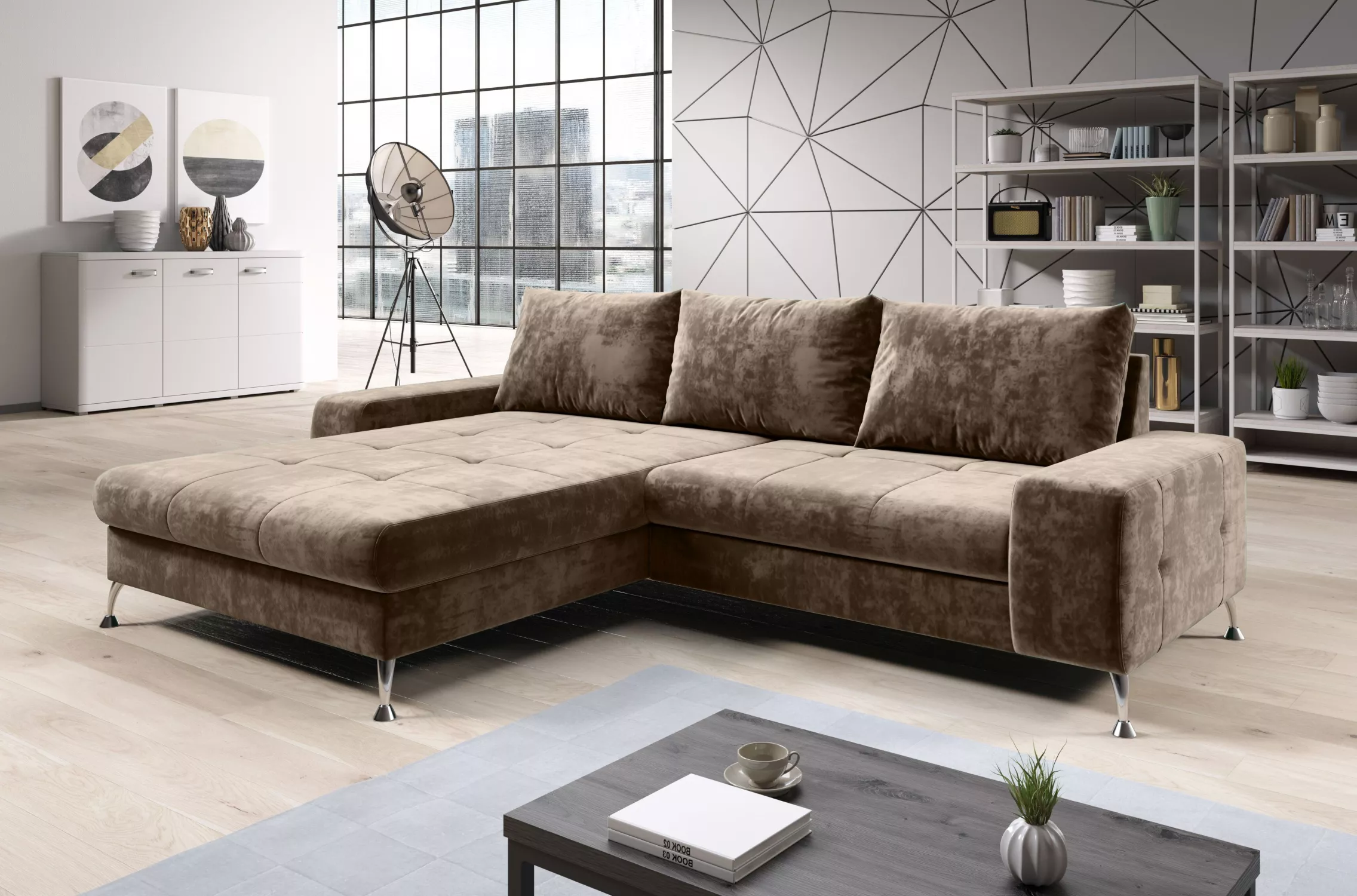 Stylová rozkládací sedačka CHRISTINE - hnědá, levý roh