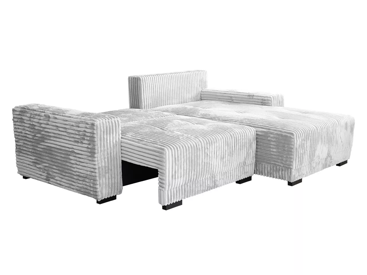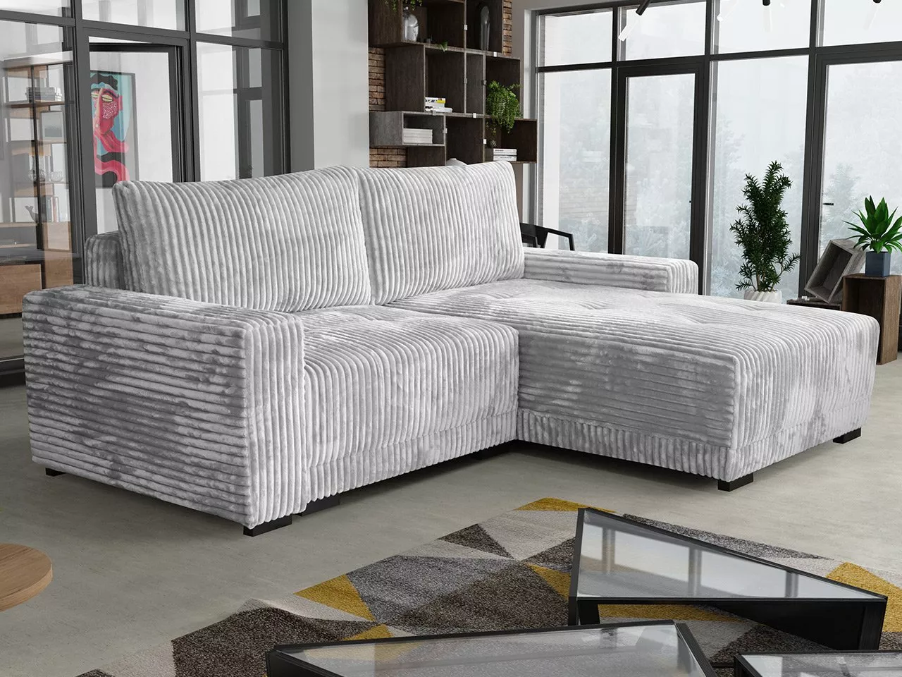 Rohová rozkládací sedačka OLLIONA na každodenní spaní vyniká vysokým komfortem. Snadným rozložením získáte spací plochu o rozměrech 130x190 cm. Další výhodou sedací soupravy je praktický úložný prostor a manšestrový potah příjemný na dotek.