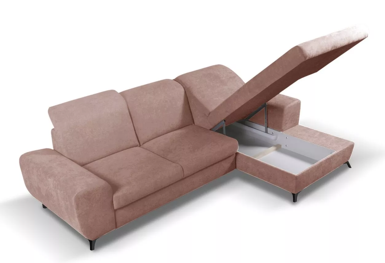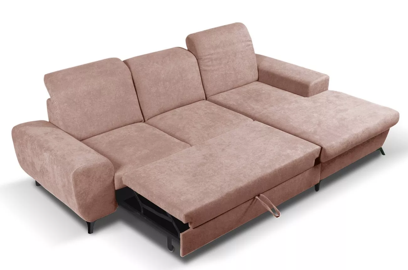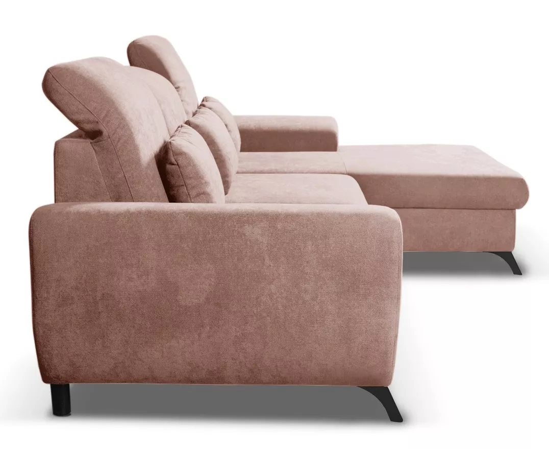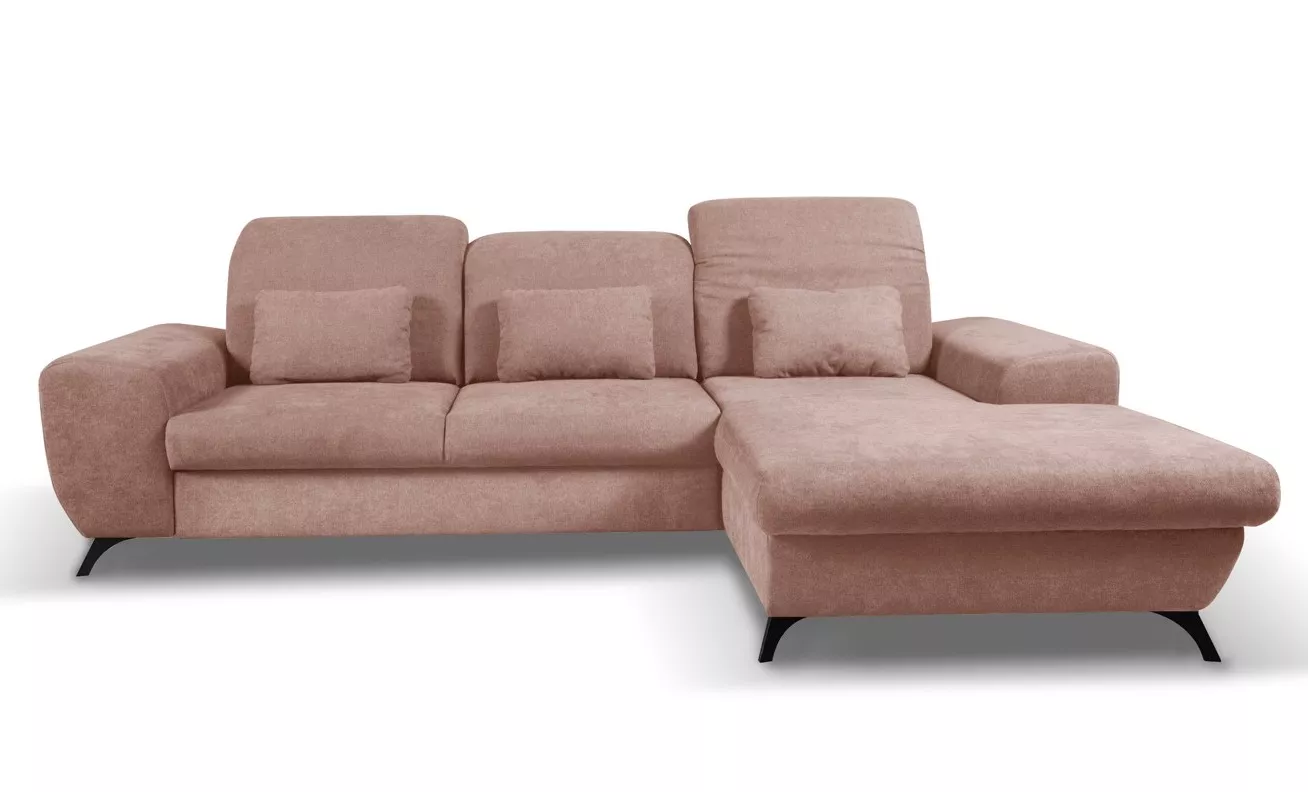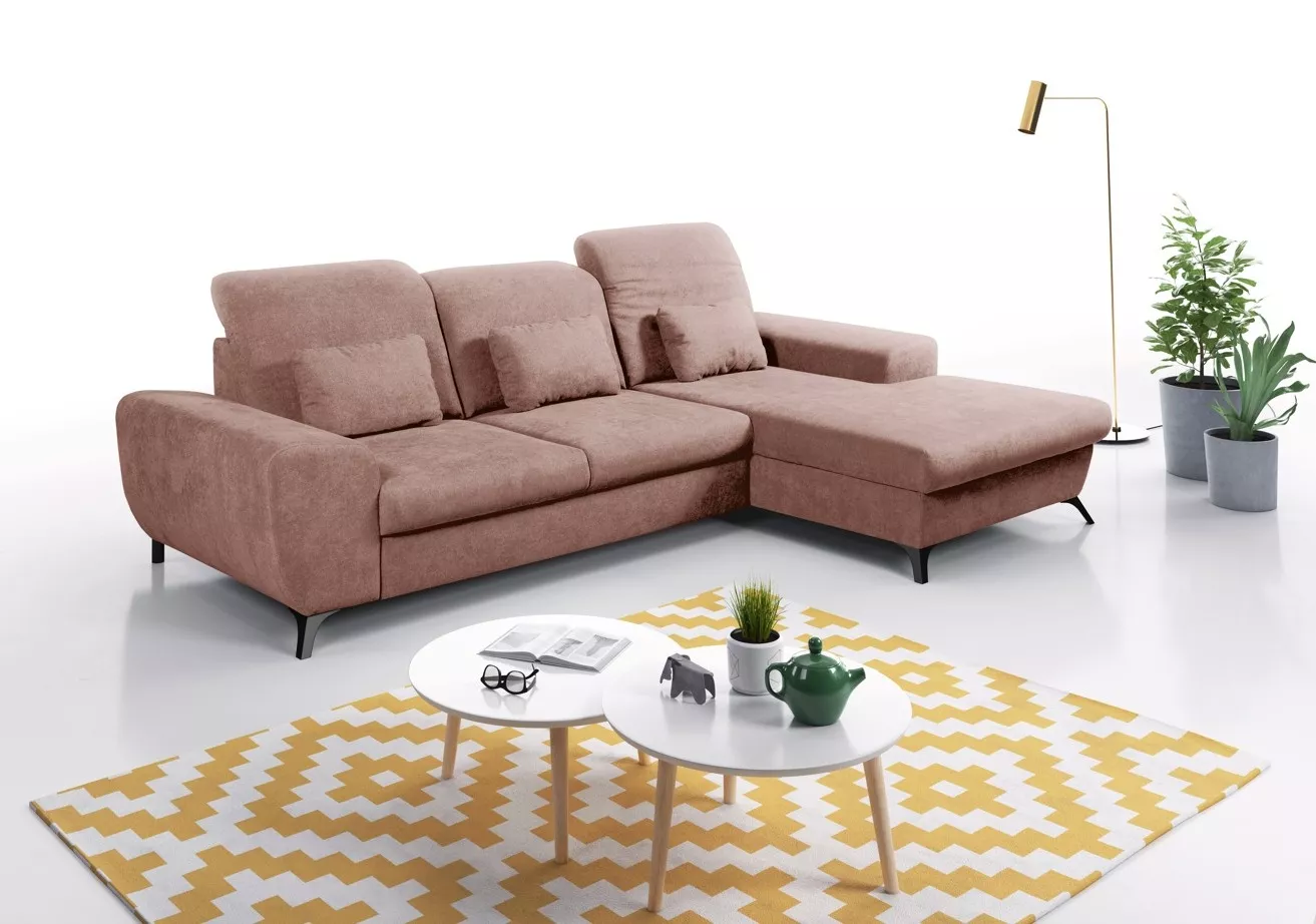 Rohová sedačka rozkládací JASPERA - pastelová růžová, pravý roh