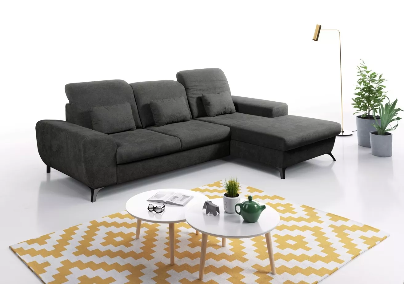 Rohová sedačka rozkládací JASPERA - ocelová šedá, pravý roh