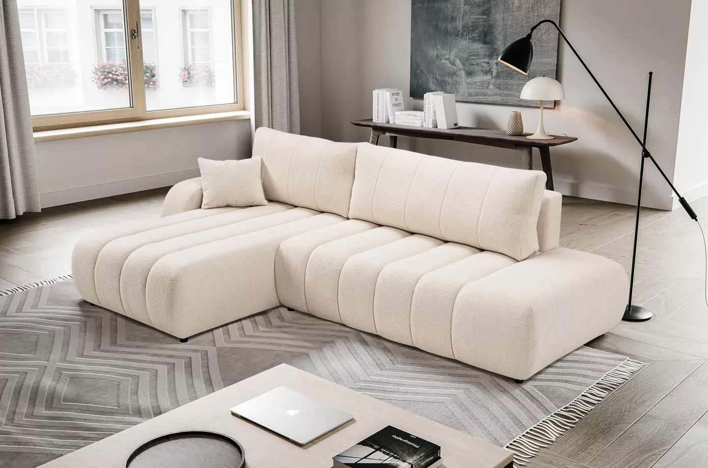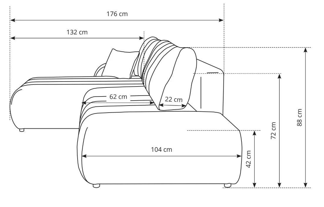 Dopřejte si pohodlí, které zaujme i na pohled! Rohová sedačka KELOWNA okouzlí netradičním tvarem a výrazným ozdobným prošíváním, které dodá interiéru styl a útulnost. Díky rozkládací funkci vznikne pohodlné lůžko o velikosti 145x212 cm, ideální pro občasné přespání. Úložný prostor nabízí místo pro deky, polštáře nebo sezónní věci. Funkčnost a design jdou tady ruku v ruce.