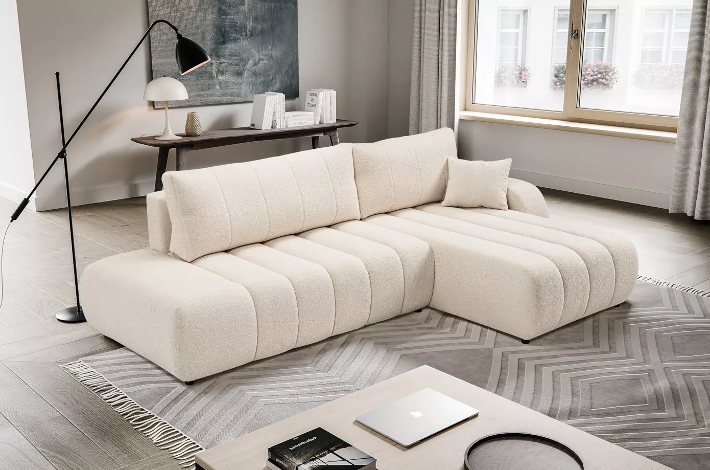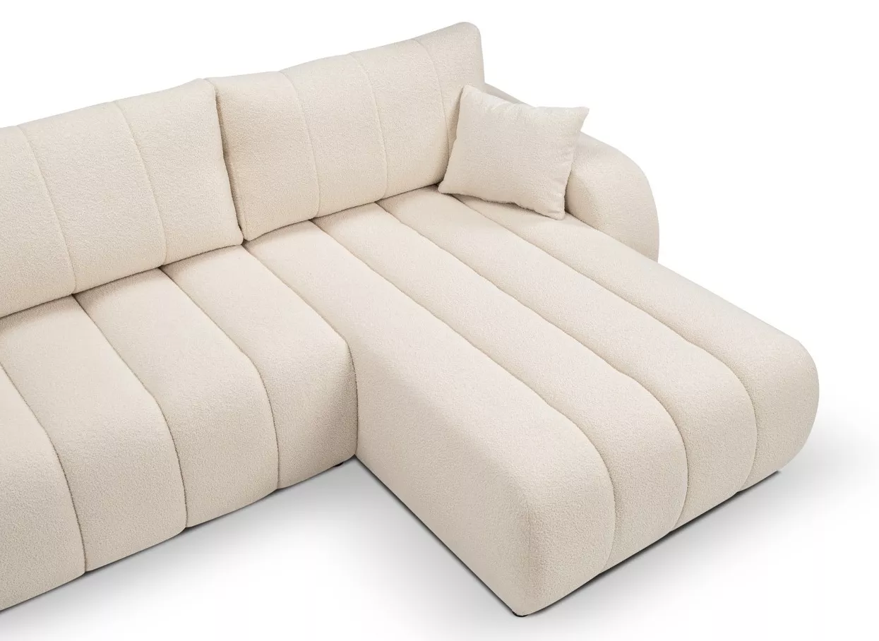 Dopřejte si pohodlí, které zaujme i na pohled! Rohová sedačka KELOWNA okouzlí netradičním tvarem a výrazným ozdobným prošíváním, které dodá interiéru styl a útulnost. Díky rozkládací funkci vznikne pohodlné lůžko o velikosti 145x212 cm, ideální pro občasné přespání. Úložný prostor nabízí místo pro deky, polštáře nebo sezónní věci. Funkčnost a design jdou tady ruku v ruce.
