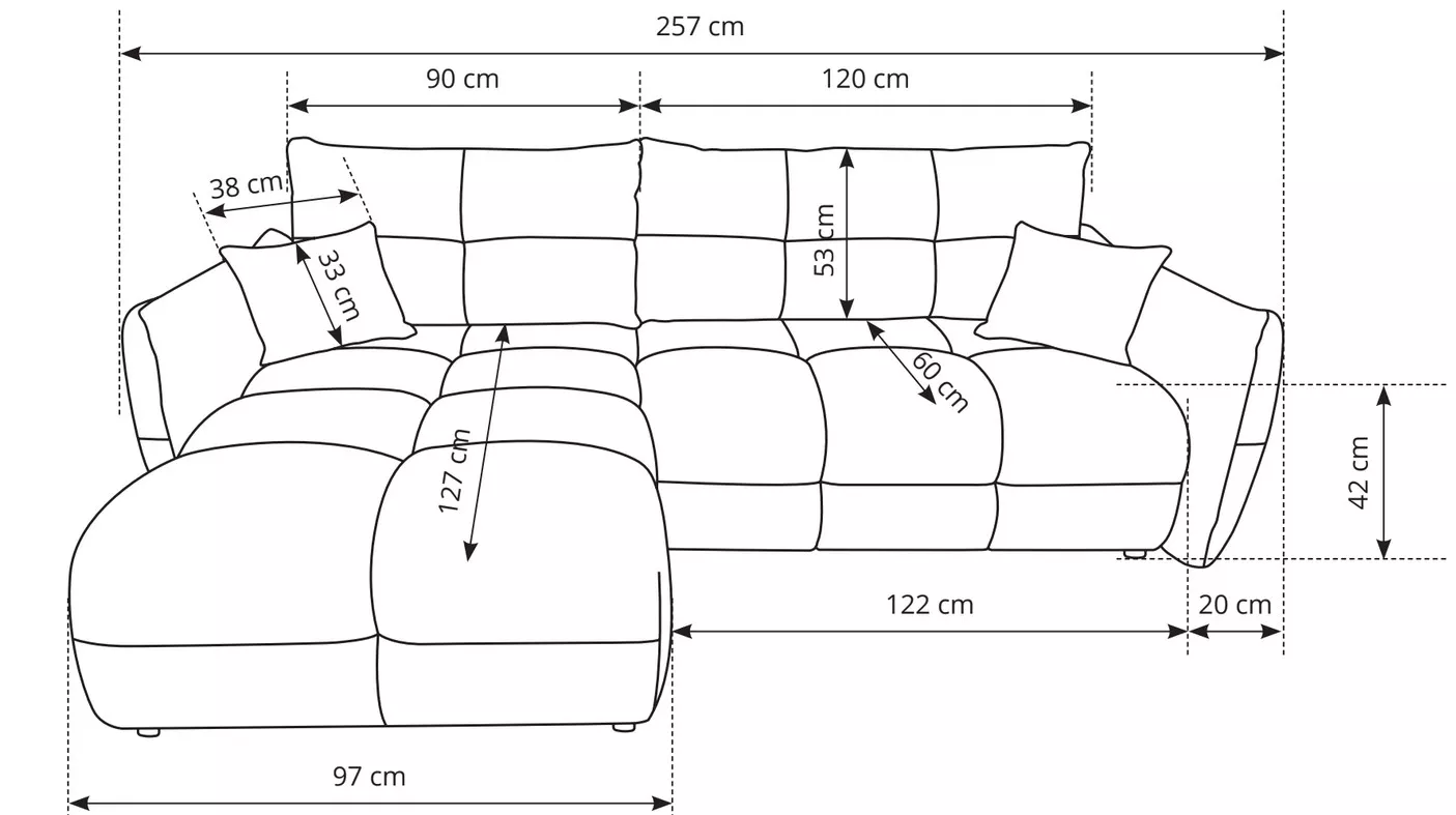 Pořiďte si stylovou sedačku, která potěší vzhledem i praktičností! CANMORE okouzlí výrazným ozdobným prošíváním, které dodá interiéru styl a útulnost. Díky rozkládací funkci jednoduše vytvoříte prostorné lůžko o rozměrech 145x212 cm, ideální pro lenošení i nečekané přespání. Úložný prostor navíc pojme deky, polštáře i další nezbytnosti, které tak máte vždy po ruce.