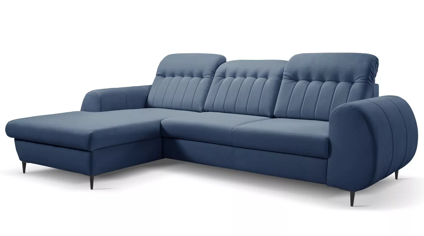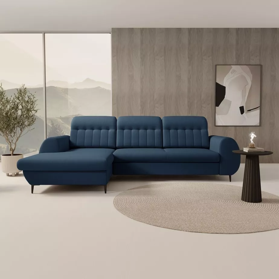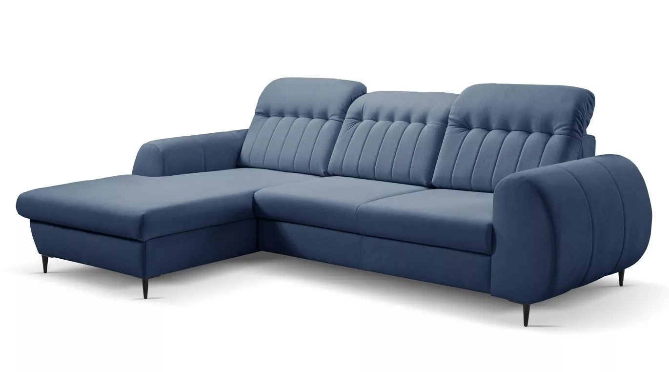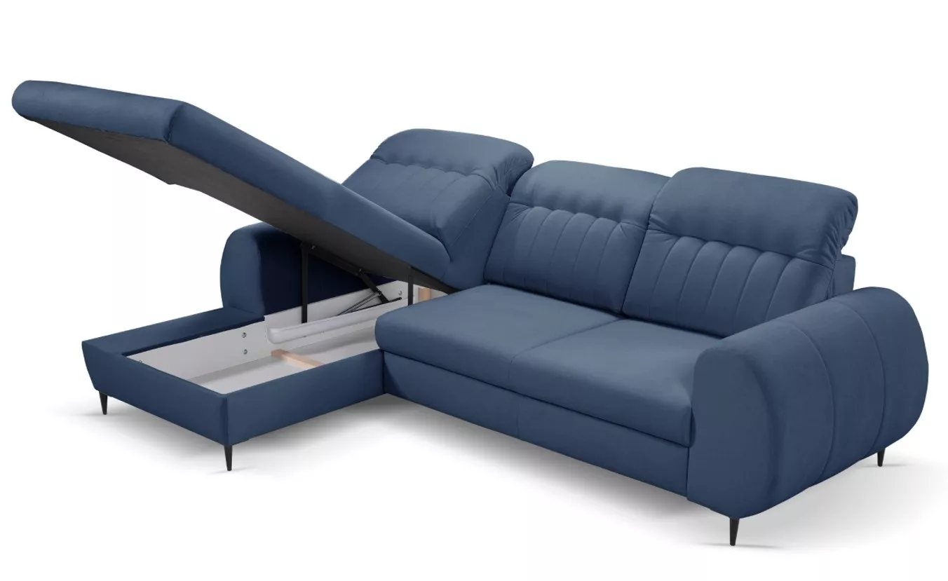 Rozkládací sedačka s úložným prostorem ORILLIA - modrá, levý roh