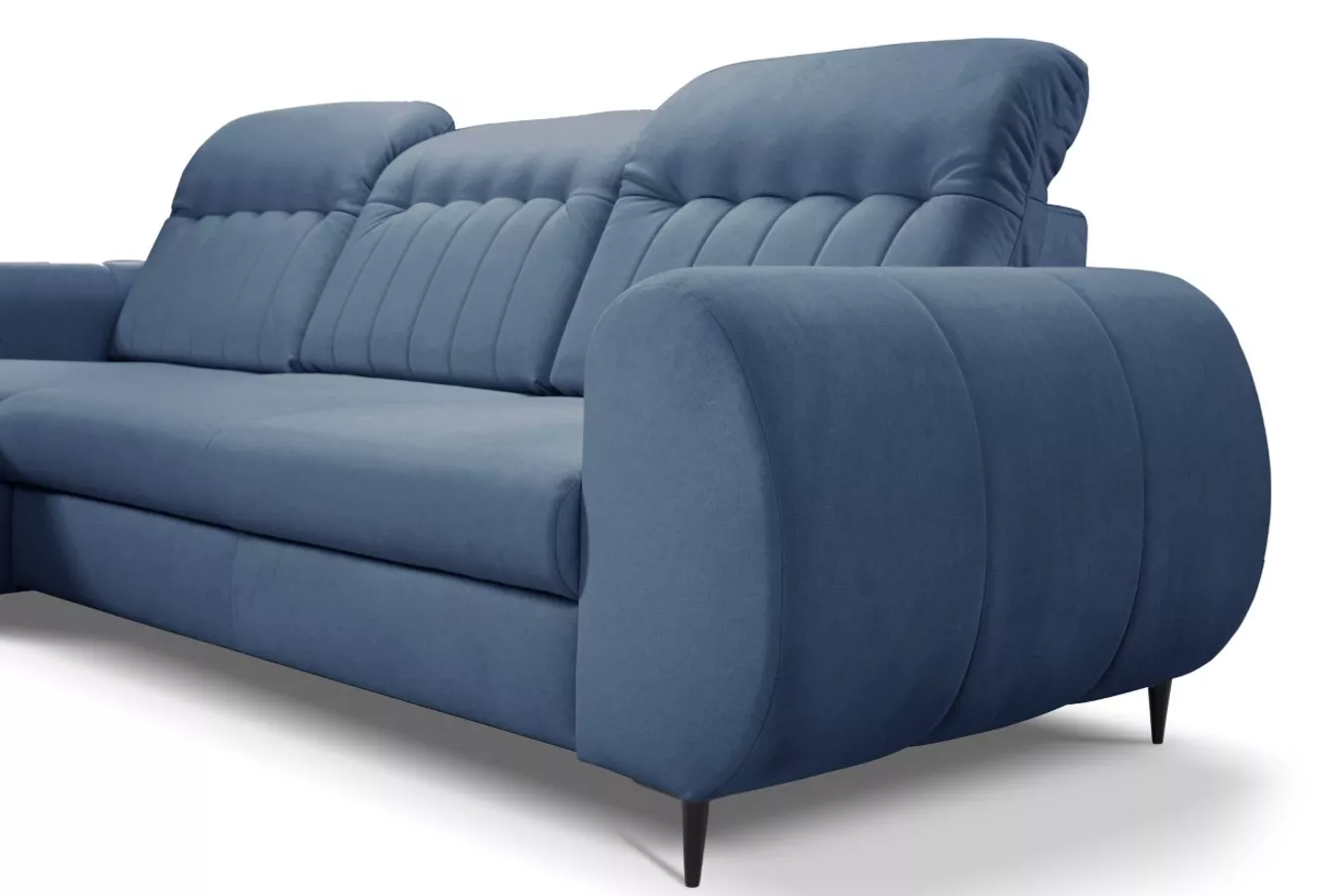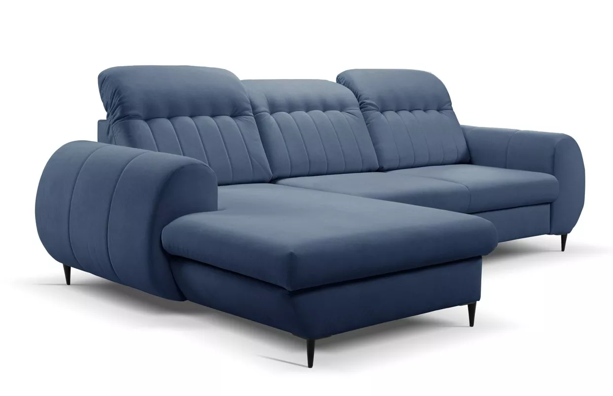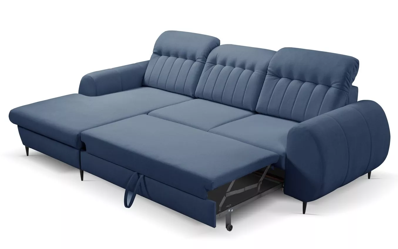 Rozkládací sedačka s úložným prostorem ORILLIA - modrá, levý roh