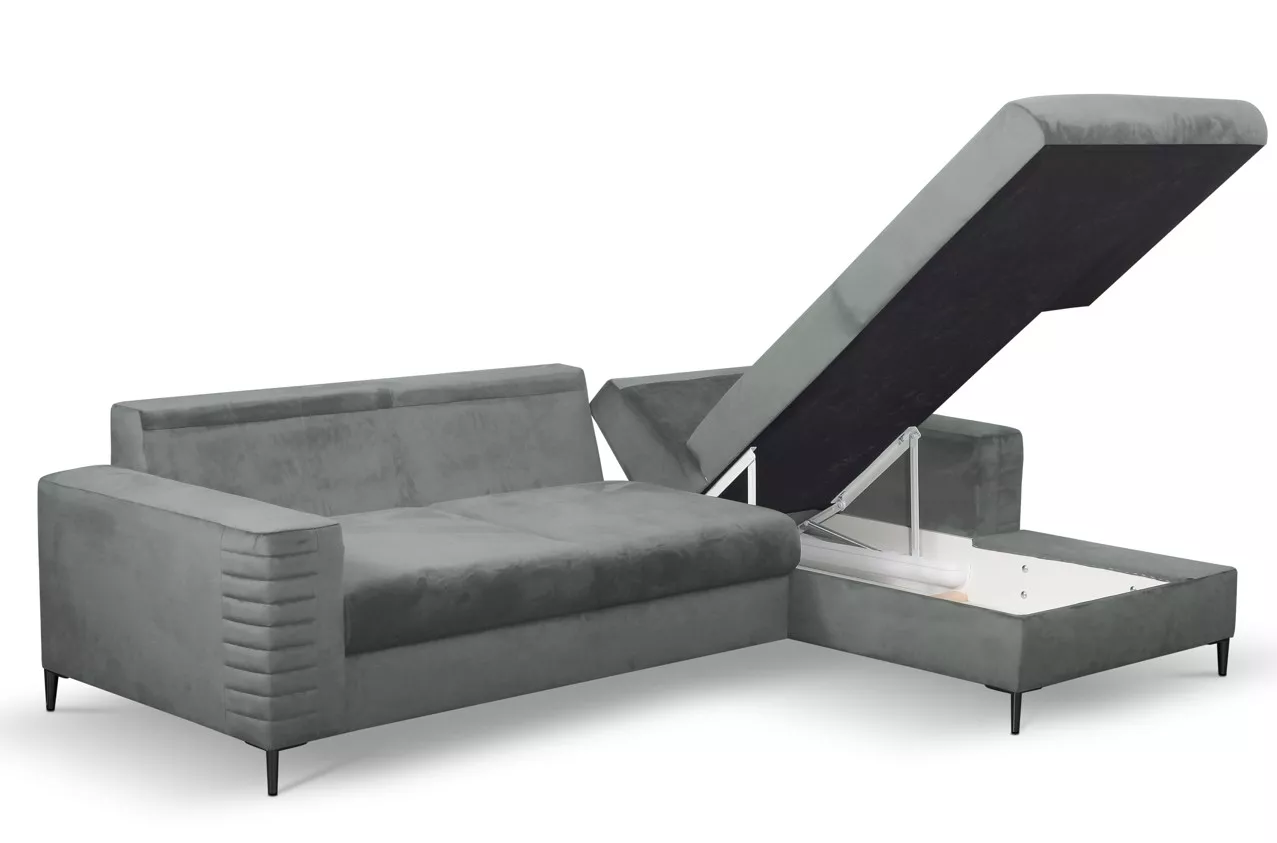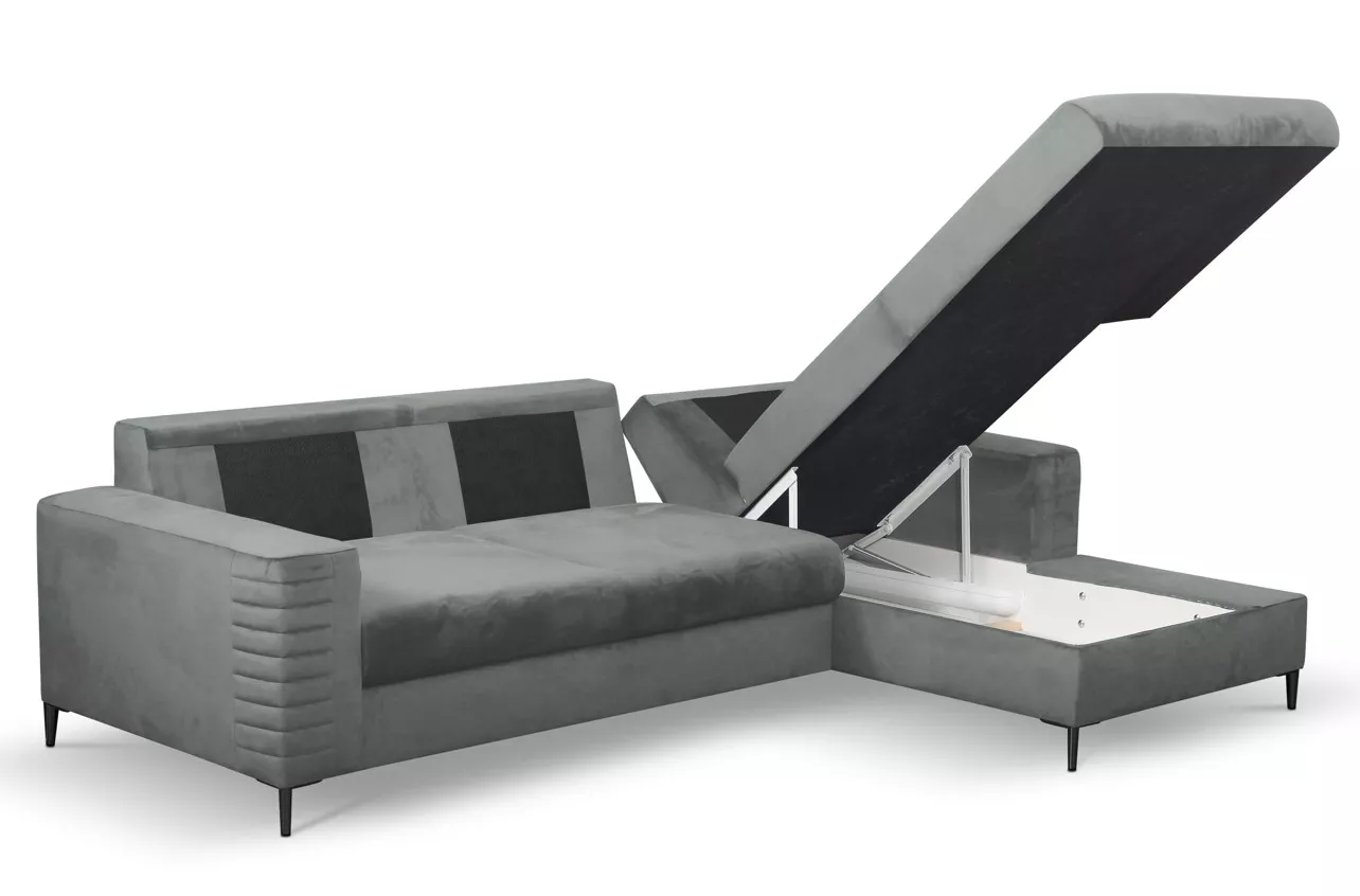 Rozkládací sedačka s úložným prostorem TIMMINS - šedá, pravý roh