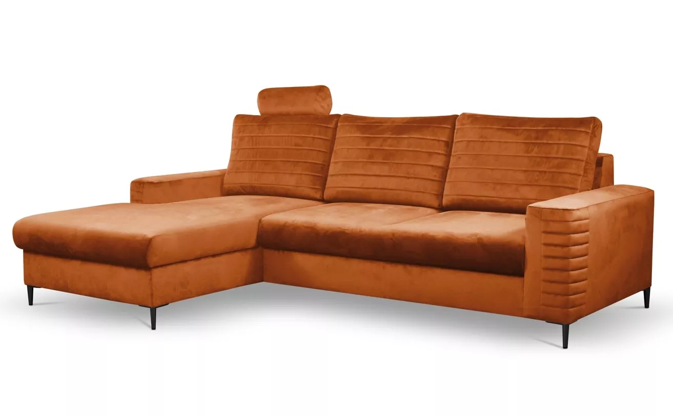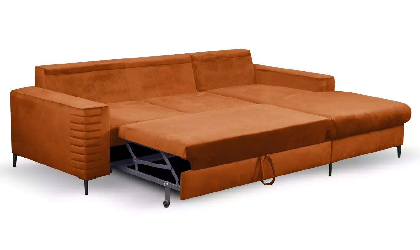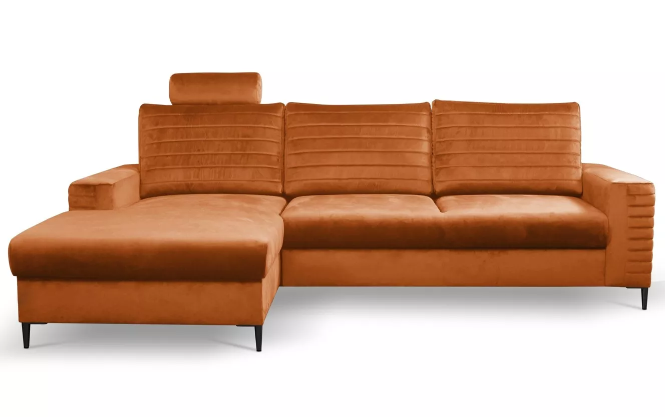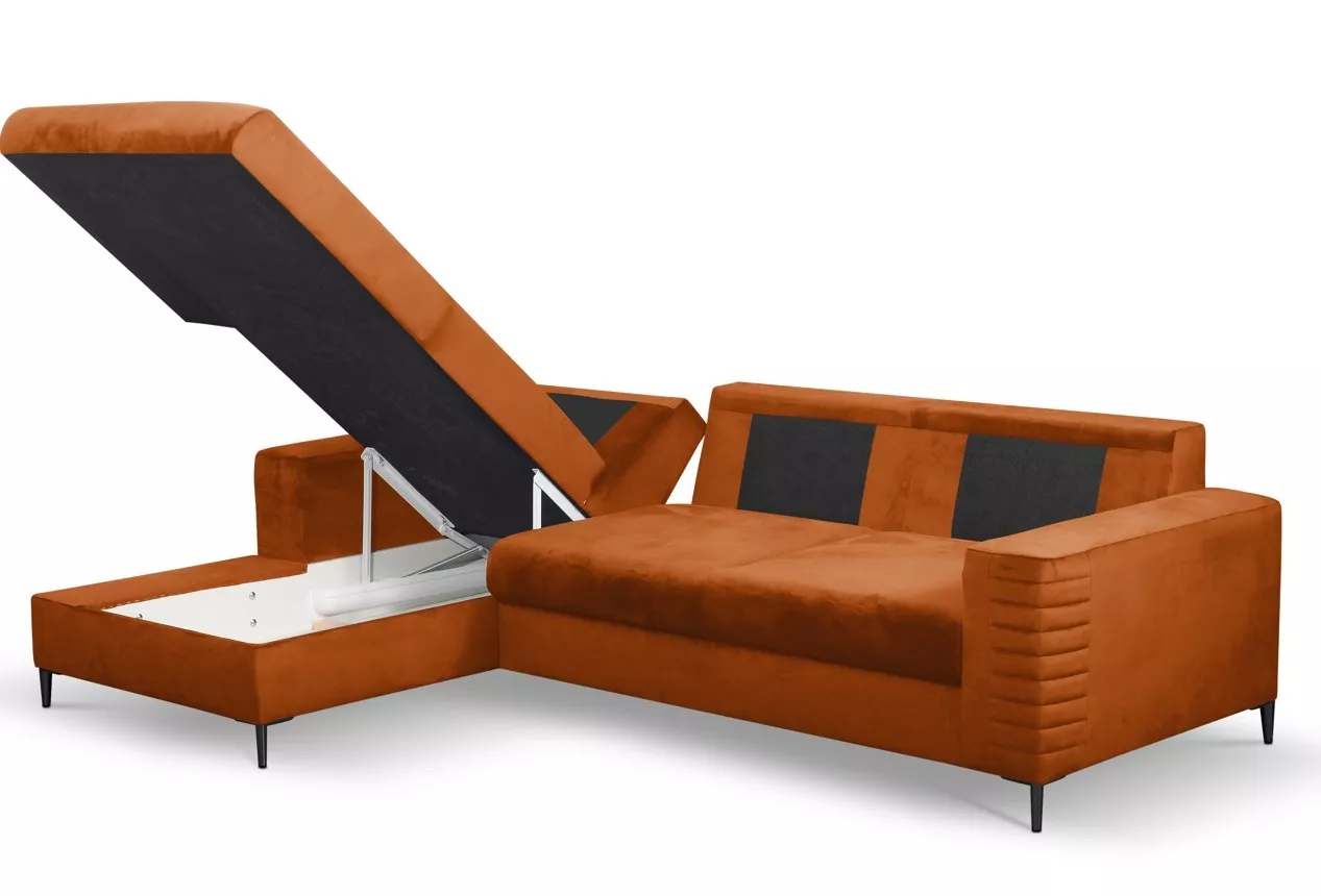 Rozkládací sedačka s úložným prostorem TIMMINS - rezavá, levý roh