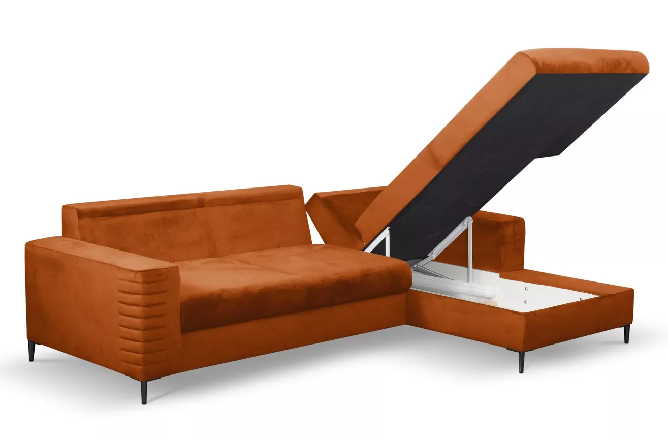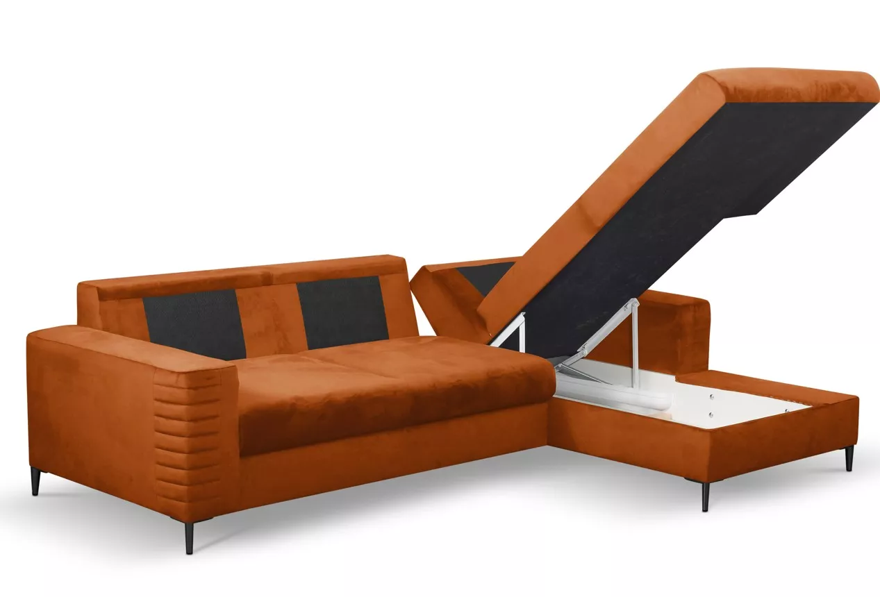 Rozkládací sedačka s úložným prostorem TIMMINS - rezavá, pravý roh
