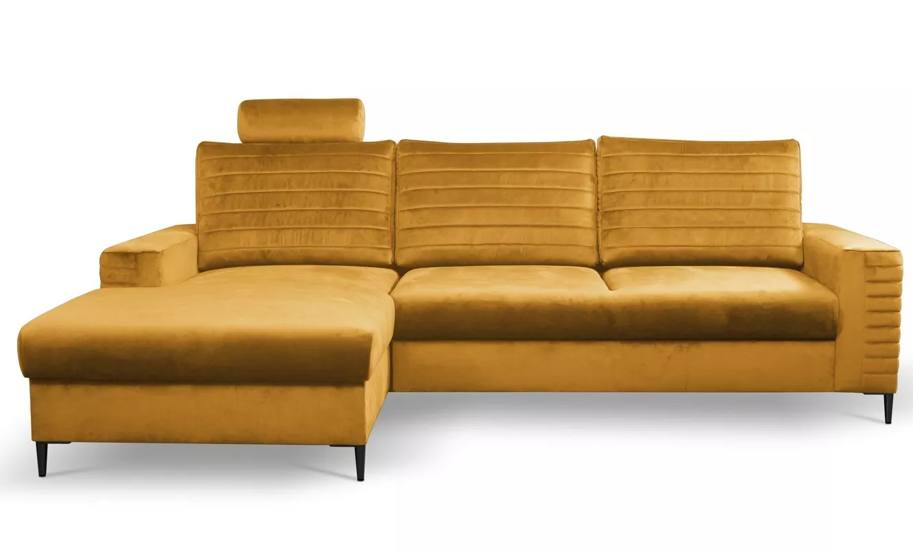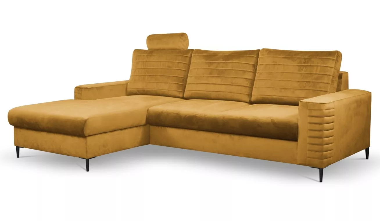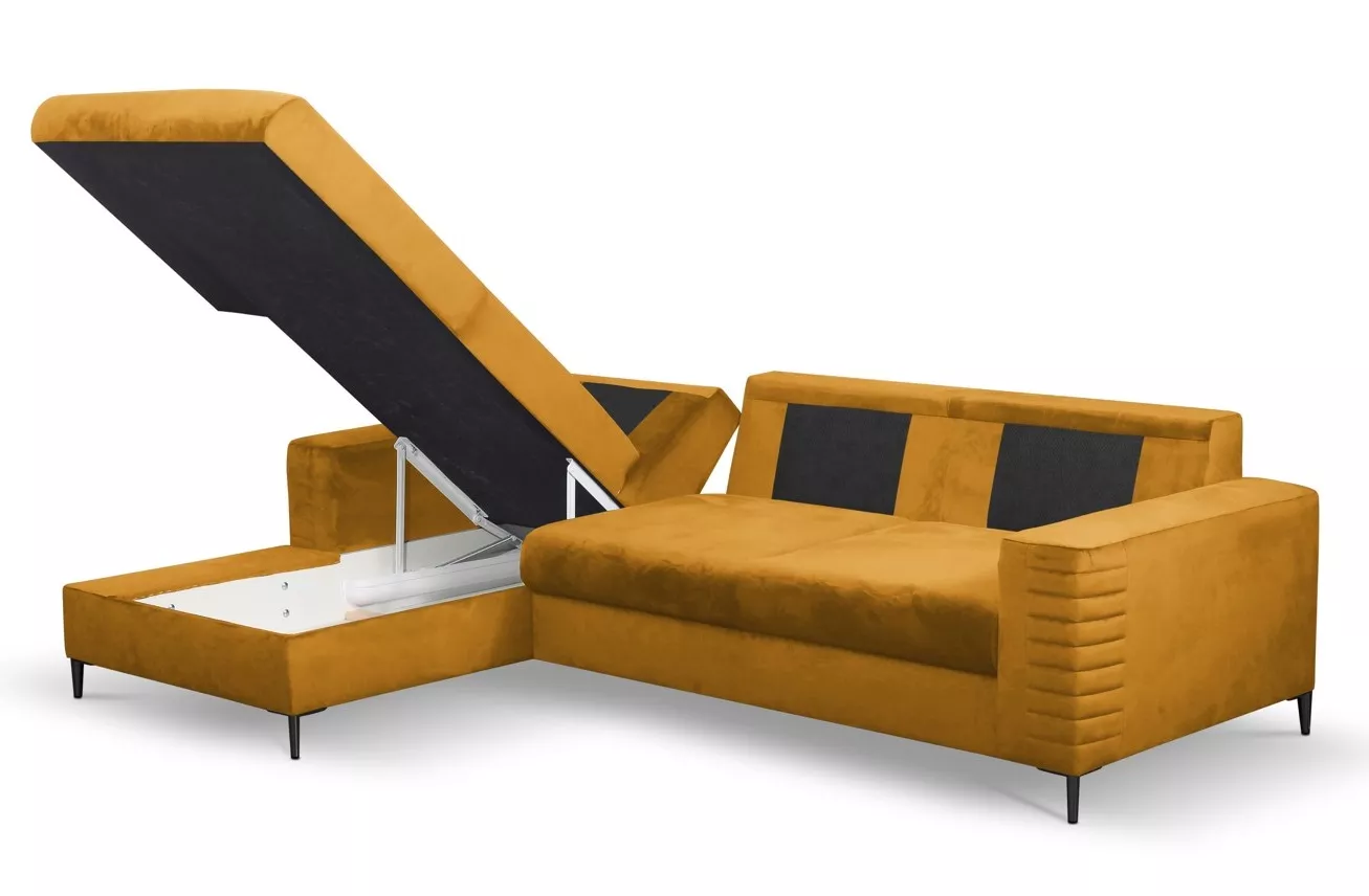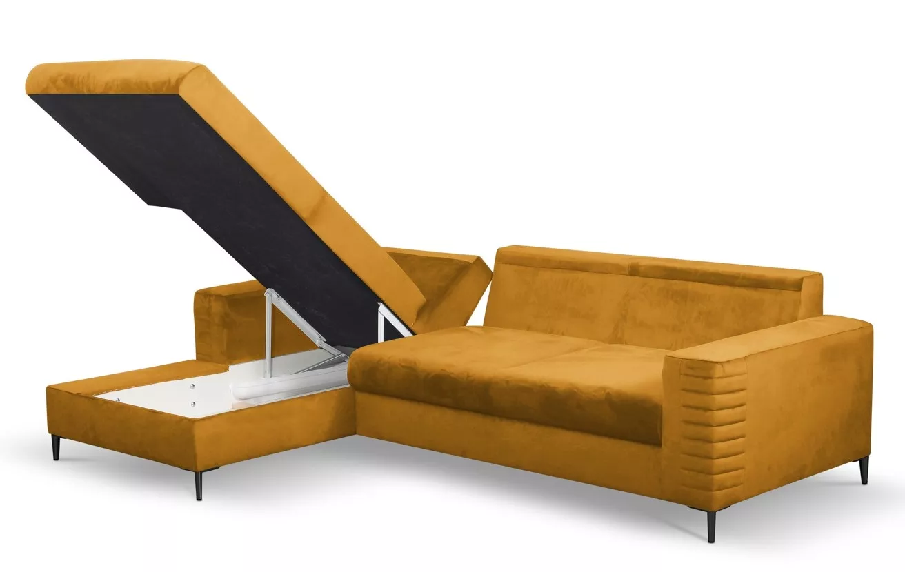 Rozkládací sedačka s úložným prostorem TIMMINS - hořčicová, levý roh