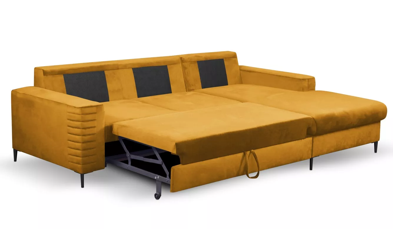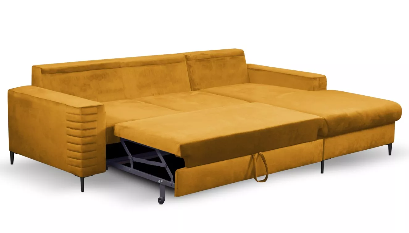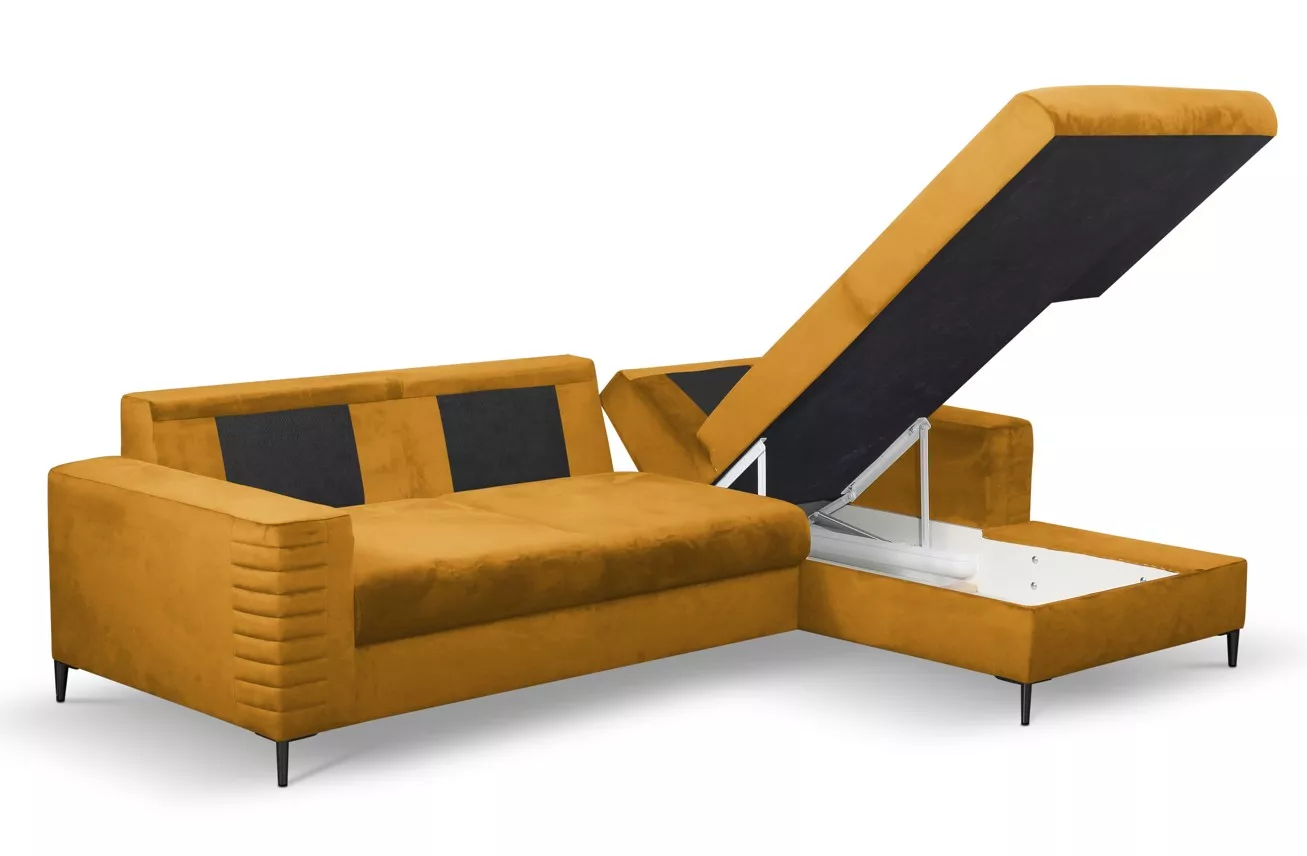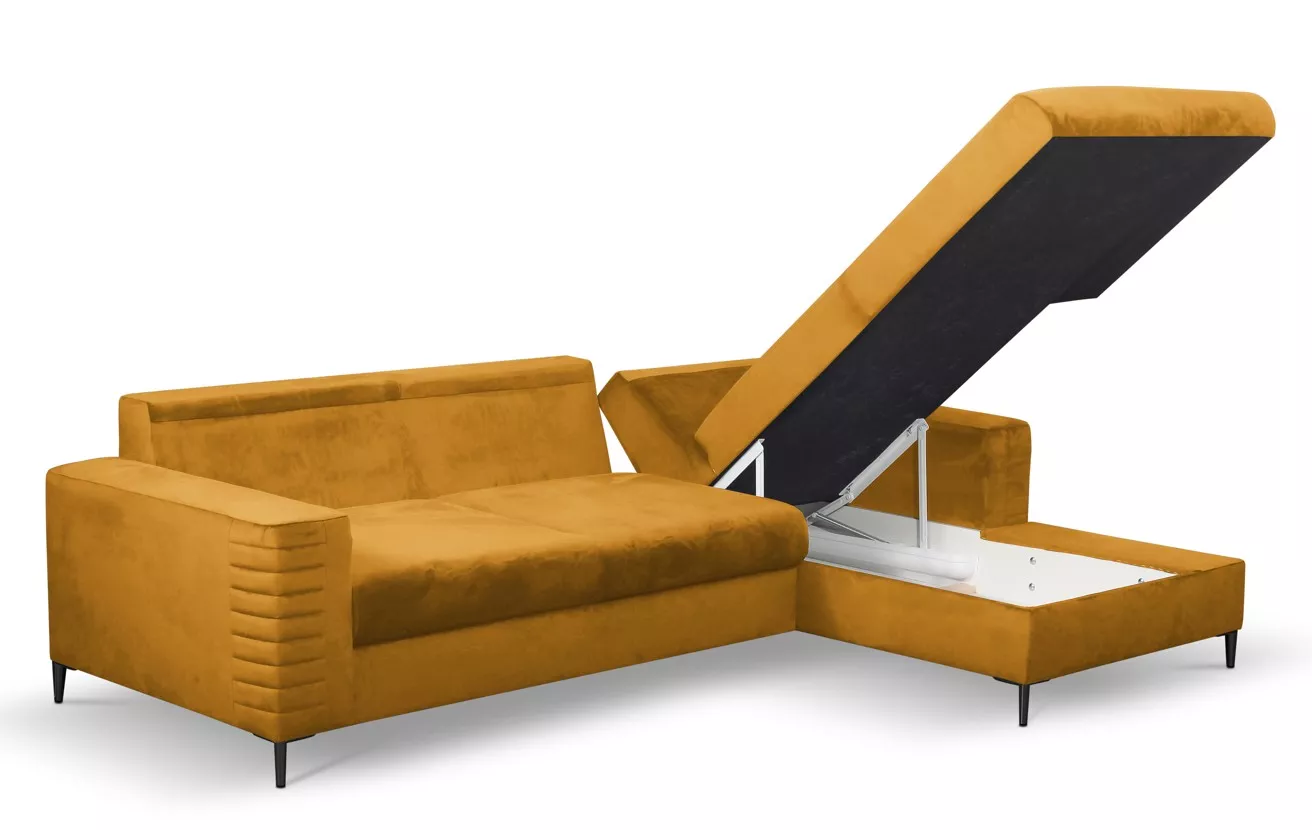 Rozkládací sedačka s úložným prostorem TIMMINS - hořčicová, pravý roh
