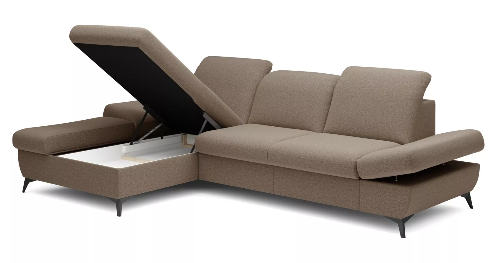 Kupte si rohovou sedačku BROCKVILLE a užijte si pohodlí na maximum! Polohovatelné opěrky hlavy a nastavitelné loketní opěrky se postarají o relax přesně podle vašich představ. Rozkládací funkce na lůžko o rozměrech 128x245 cm i praktický úložný prostor činí ze sedací soupravy ideální volbu pro každodenní pohodu. Moderní design dodá vašemu interiéru styl i šmrnc.