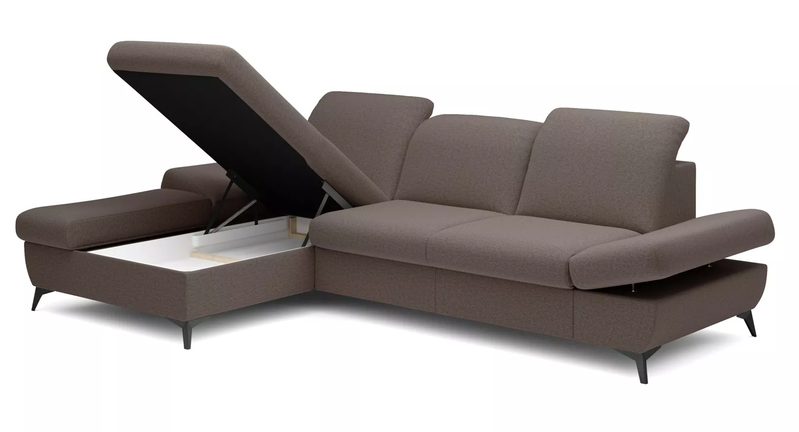 Kupte si rohovou sedačku BROCKVILLE a užijte si pohodlí na maximum! Polohovatelné opěrky hlavy a nastavitelné loketní opěrky se postarají o relax přesně podle vašich představ. Rozkládací funkce na lůžko o rozměrech 128x245 cm i praktický úložný prostor činí ze sedací soupravy ideální volbu pro každodenní pohodu. Moderní design dodá vašemu interiéru styl i šmrnc.