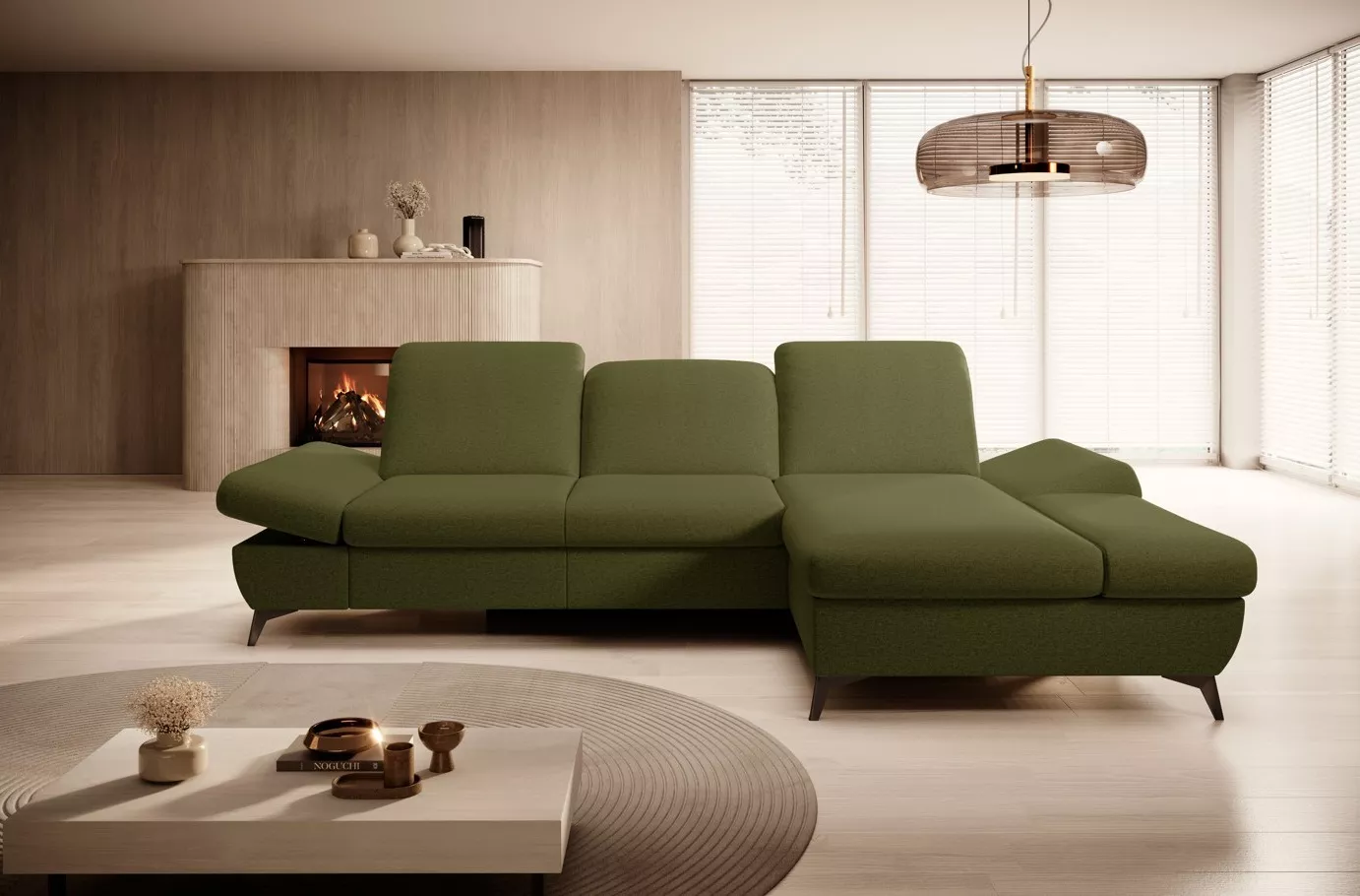 Rohová rozkládací sedací souprava BROCKVILE - khaki, pravý roh