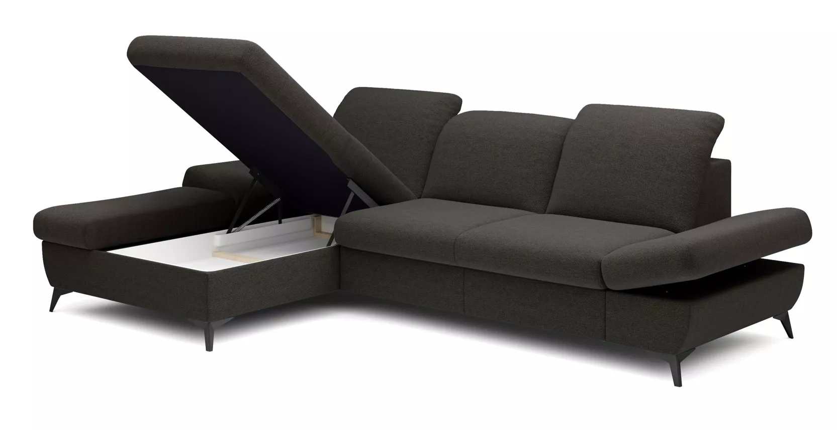 Kupte si rohovou sedačku BROCKVILLE a užijte si pohodlí na maximum! Polohovatelné opěrky hlavy a nastavitelné loketní opěrky se postarají o relax přesně podle vašich představ. Rozkládací funkce na lůžko o rozměrech 128x245 cm i praktický úložný prostor činí ze sedací soupravy ideální volbu pro každodenní pohodu. Moderní design dodá vašemu interiéru styl i šmrnc.