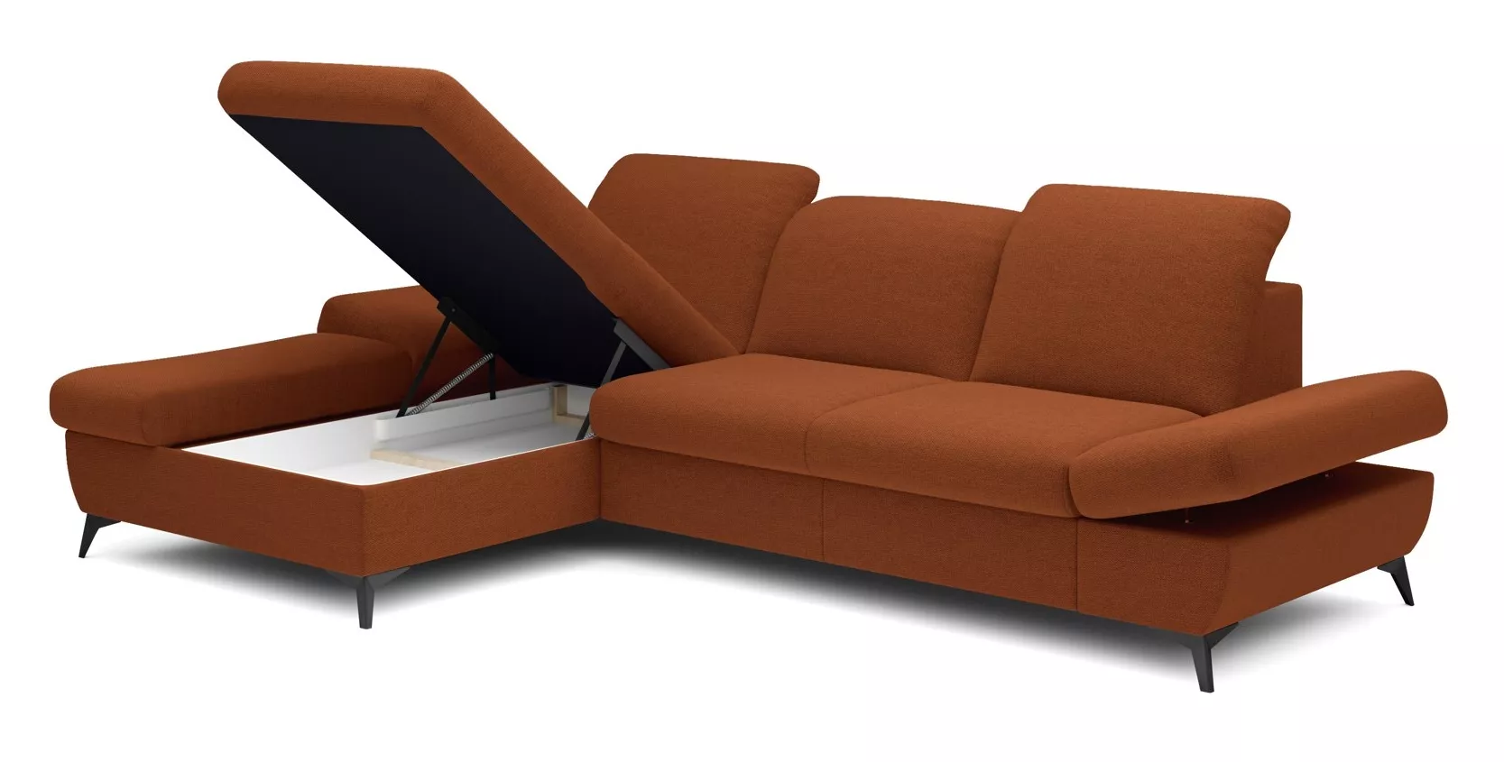 Kupte si rohovou sedačku BROCKVILLE a užijte si pohodlí na maximum! Polohovatelné opěrky hlavy a nastavitelné loketní opěrky se postarají o relax přesně podle vašich představ. Rozkládací funkce na lůžko o rozměrech 128x245 cm i praktický úložný prostor činí ze sedací soupravy ideální volbu pro každodenní pohodu. Moderní design dodá vašemu interiéru styl i šmrnc.