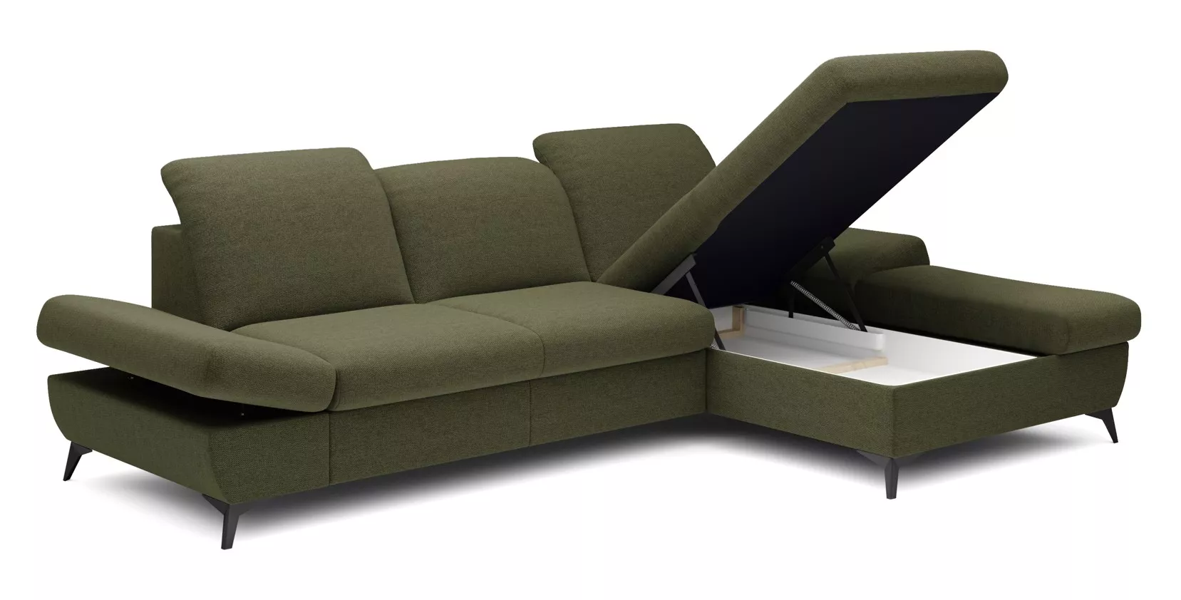 Kupte si rohovou sedačku BROCKVILLE a užijte si pohodlí na maximum! Polohovatelné opěrky hlavy a nastavitelné loketní opěrky se postarají o relax přesně podle vašich představ. Rozkládací funkce na lůžko o rozměrech 128x245 cm i praktický úložný prostor činí ze sedací soupravy ideální volbu pro každodenní pohodu. Moderní design dodá vašemu interiéru styl i šmrnc.