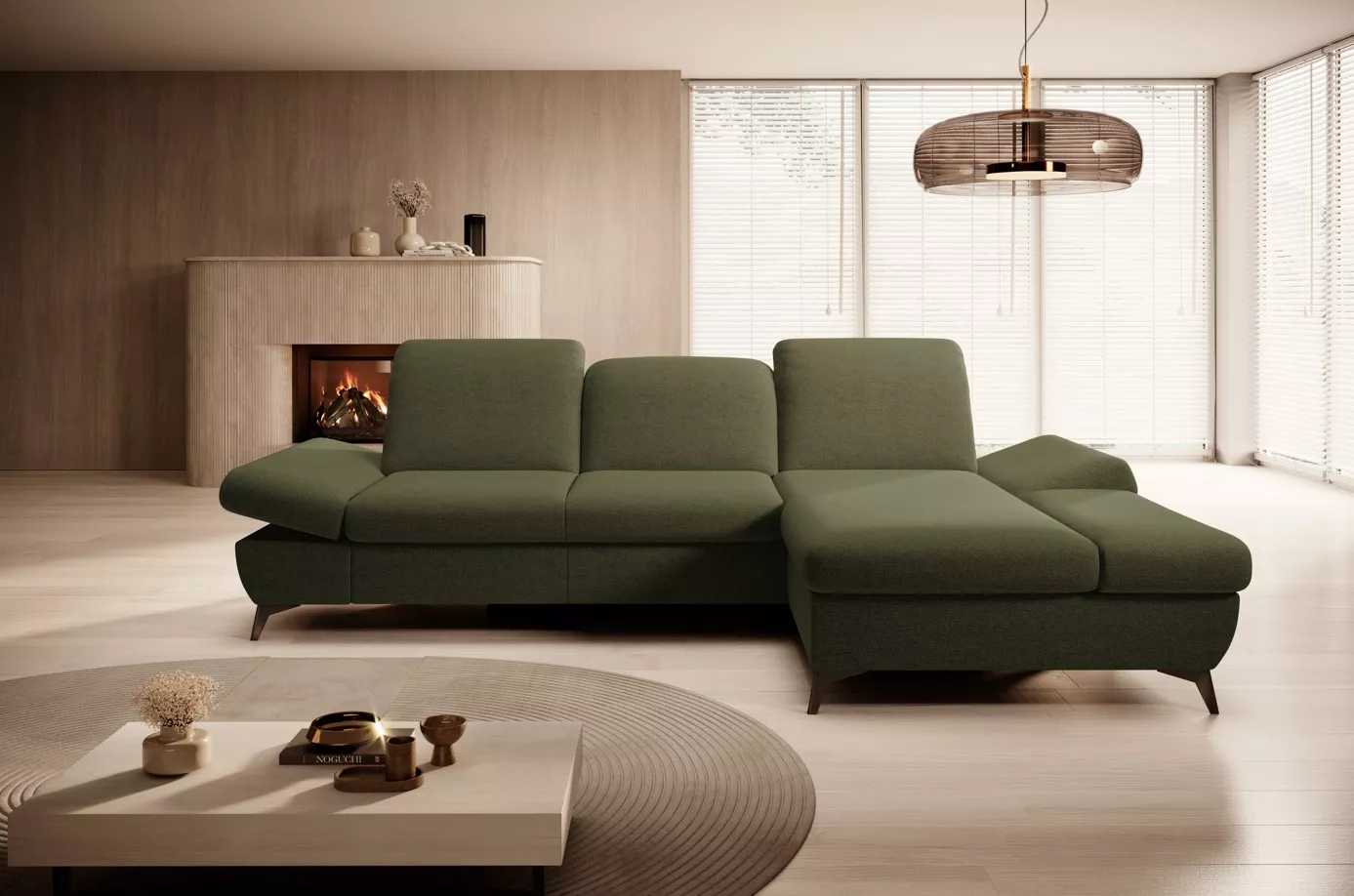 Rohová rozkládací sedací souprava BROCKVILE - olivová, pravý roh