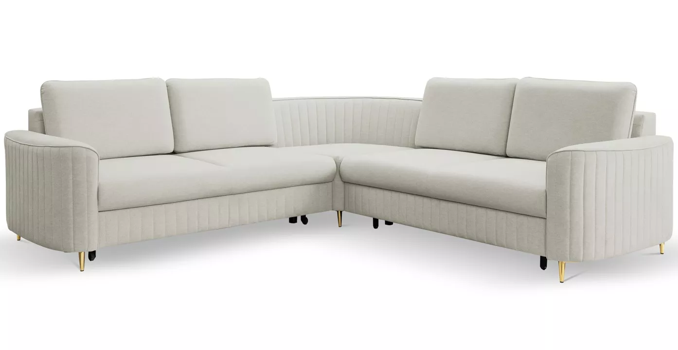 Pořiďte si skvost, který rozzáří každý interiér! Sedačka KAMPLO 1 okouzlí výrazným prošíváním, zlatými nohami a symetrickým tvarem, který působí luxusně a harmonicky. Díky rozkládací funkci potěší i praktičností. Elegantní designová hvězda, která se stane středobodem obývacího pokoje.