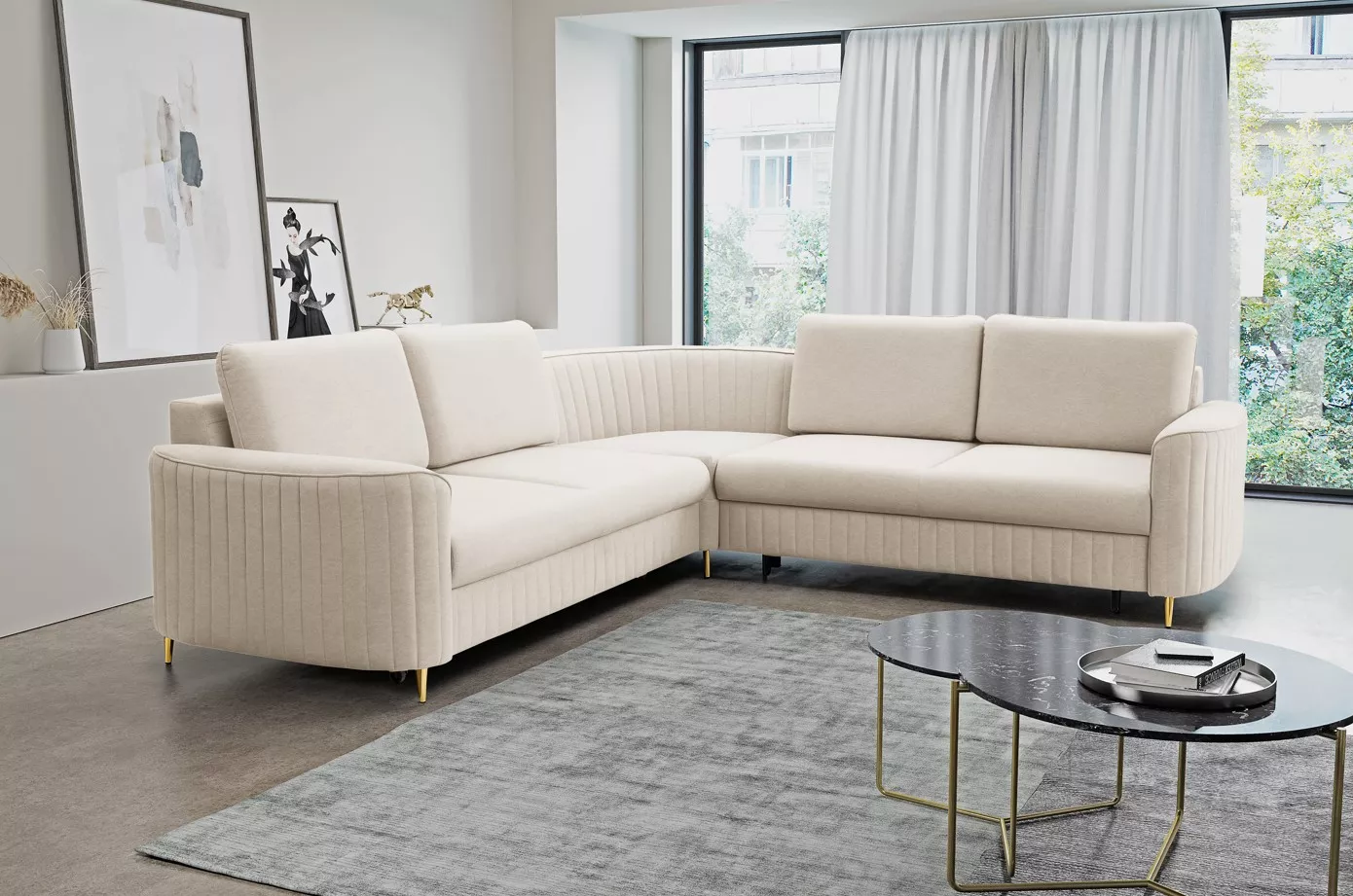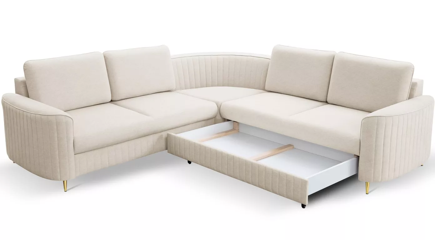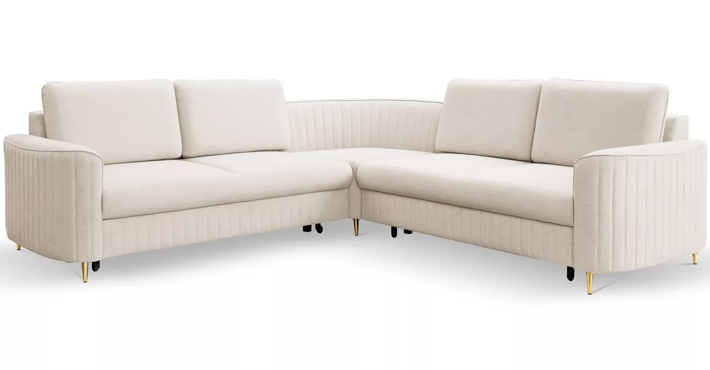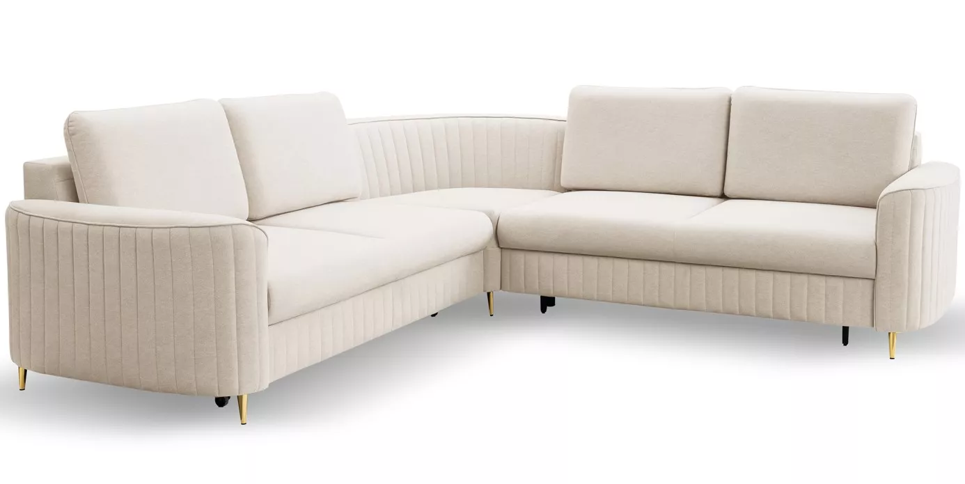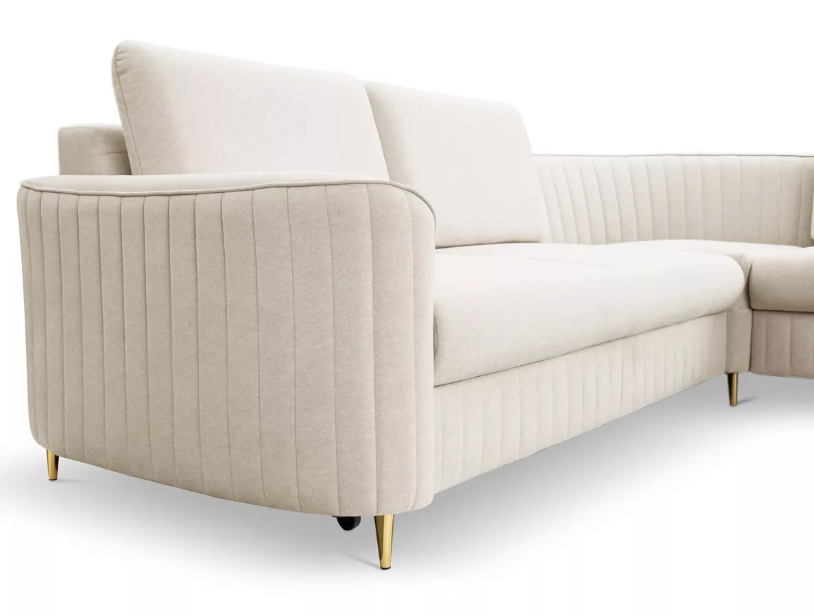 Pořiďte si skvost, který rozzáří každý interiér! Sedačka KAMPLO 2 okouzlí výrazným prošíváním, zlatými nohami a symetrickým tvarem, který působí luxusně a harmonicky. Díky rozkládací funkci a prostornému úložnému prostoru potěší i praktičností. Elegantní designová hvězda, která se stane středobodem obývacího pokoje.