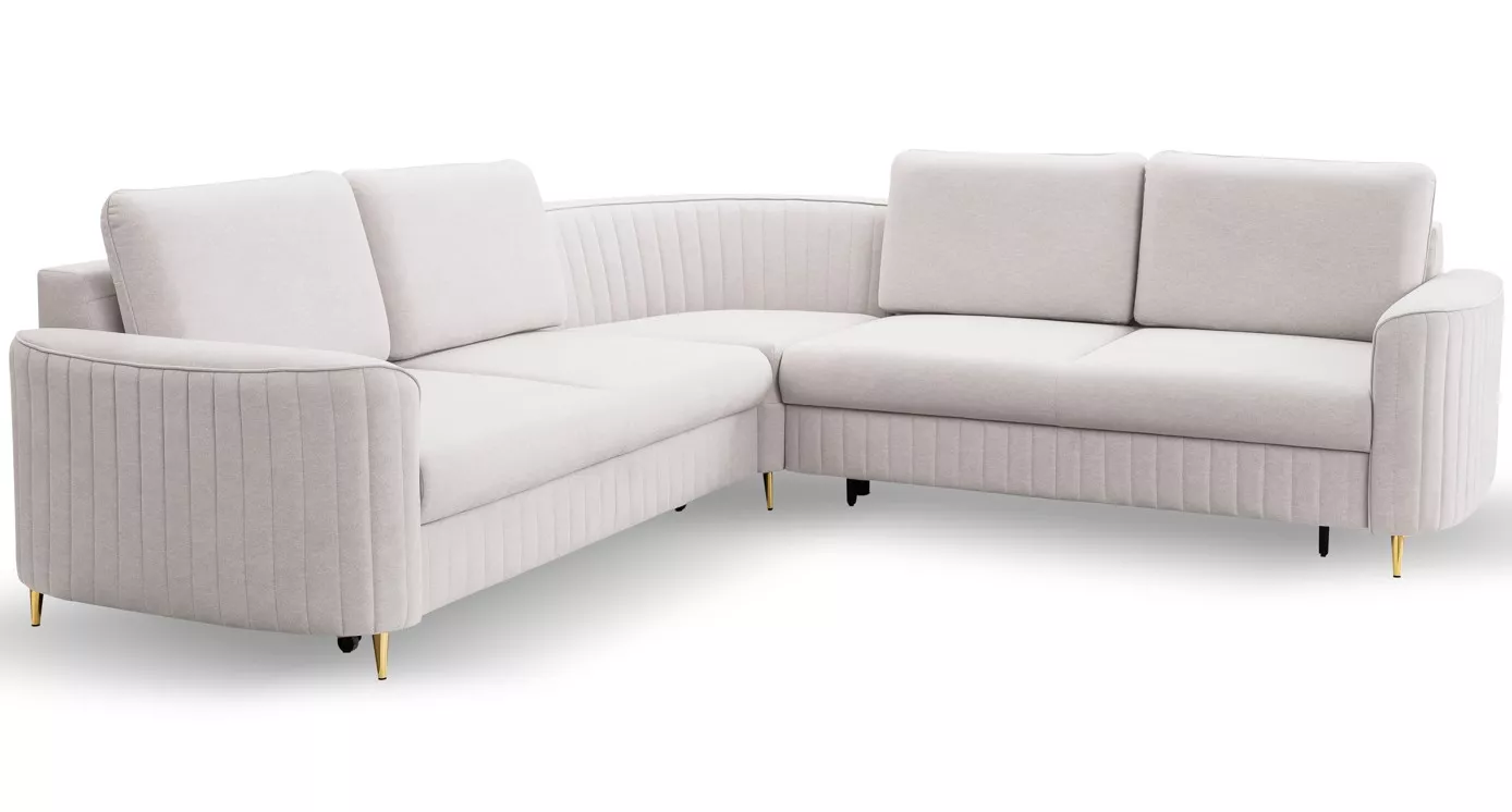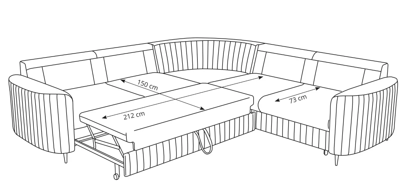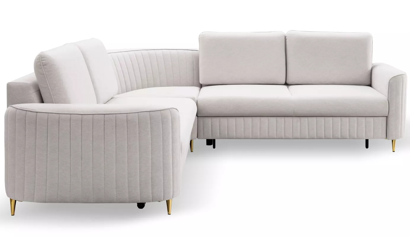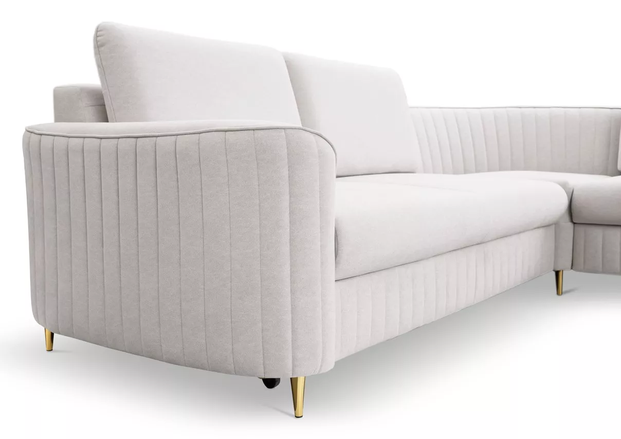 Pořiďte si skvost, který rozzáří každý interiér! Sedačka KAMPLO 2 okouzlí výrazným prošíváním, zlatými nohami a symetrickým tvarem, který působí luxusně a harmonicky. Díky rozkládací funkci a prostornému úložnému prostoru potěší i praktičností. Elegantní designová hvězda, která se stane středobodem obývacího pokoje.