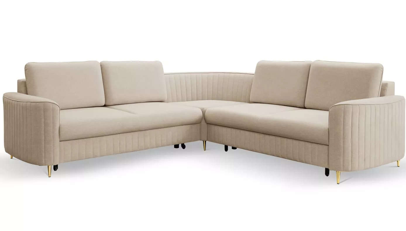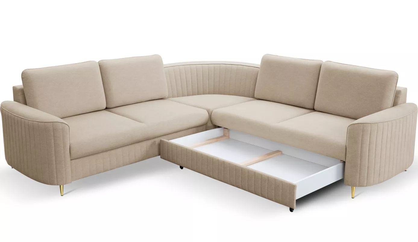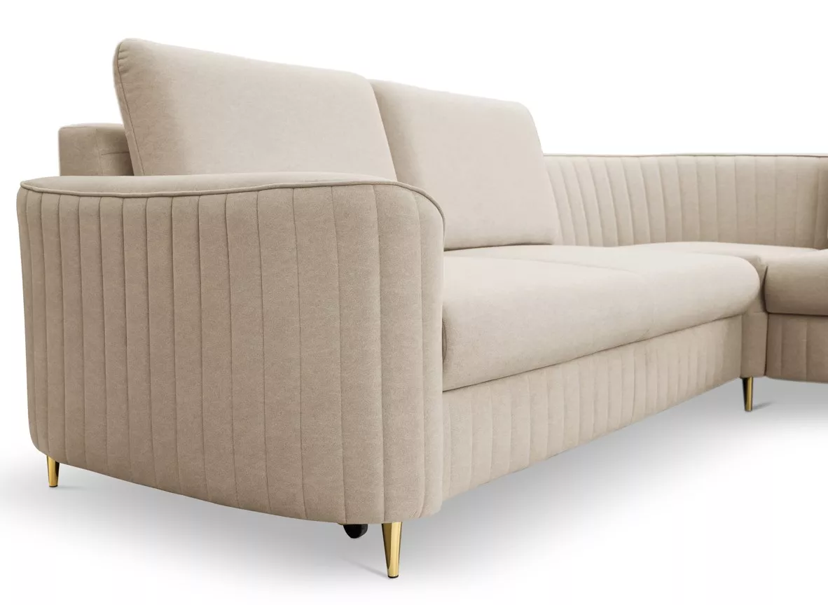 Pořiďte si skvost, který rozzáří každý interiér! Sedačka KAMPLO 2 okouzlí výrazným prošíváním, zlatými nohami a symetrickým tvarem, který působí luxusně a harmonicky. Díky rozkládací funkci a prostornému úložnému prostoru potěší i praktičností. Elegantní designová hvězda, která se stane středobodem obývacího pokoje.