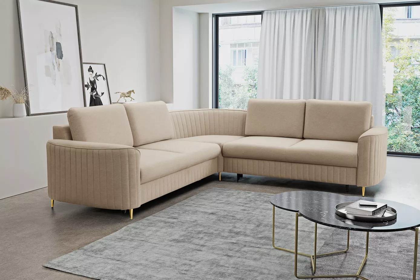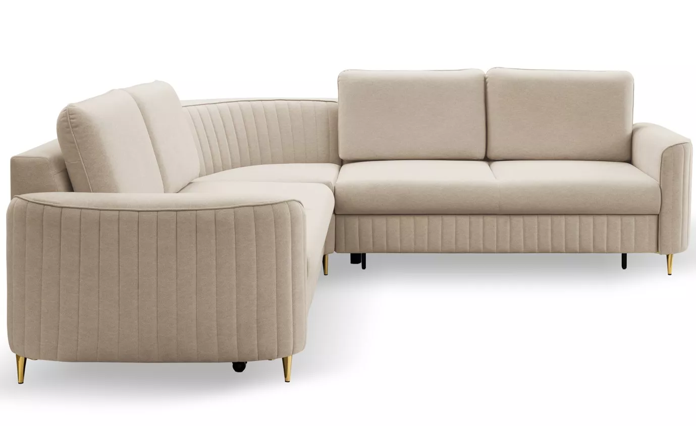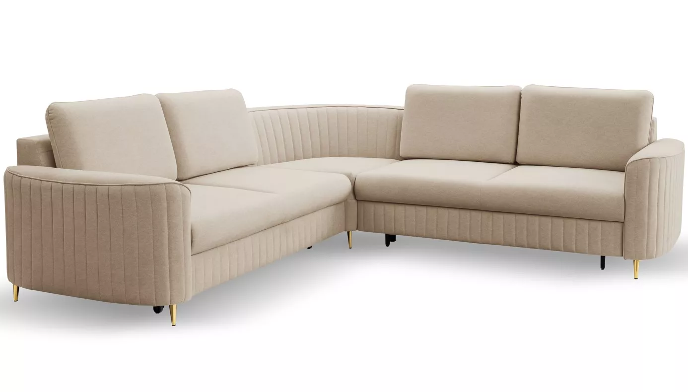 Pořiďte si skvost, který rozzáří každý interiér! Sedačka KAMPLO 2 okouzlí výrazným prošíváním, zlatými nohami a symetrickým tvarem, který působí luxusně a harmonicky. Díky rozkládací funkci a prostornému úložnému prostoru potěší i praktičností. Elegantní designová hvězda, která se stane středobodem obývacího pokoje.
