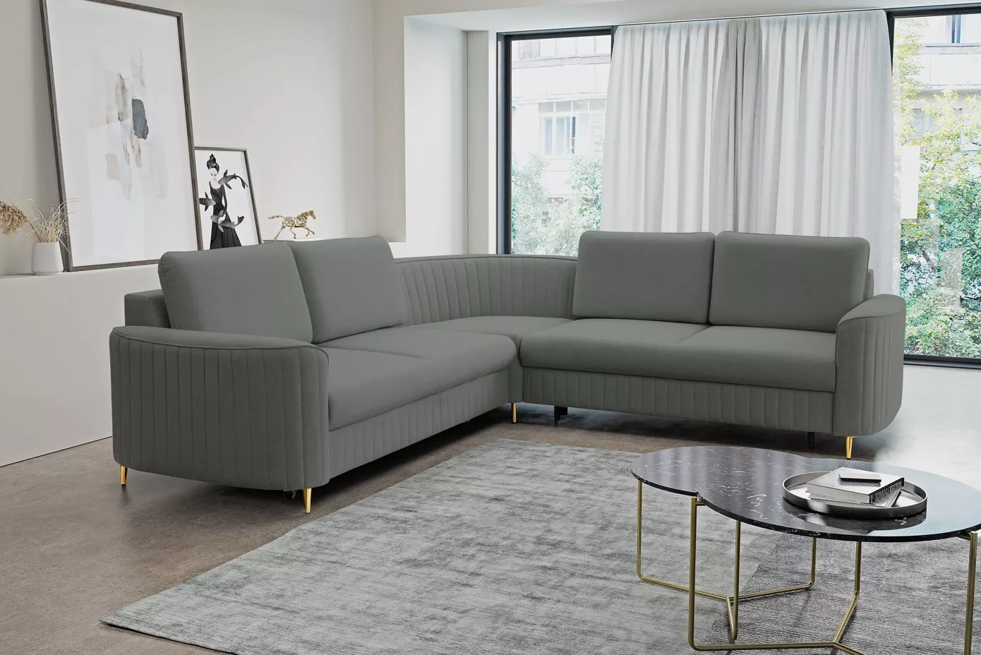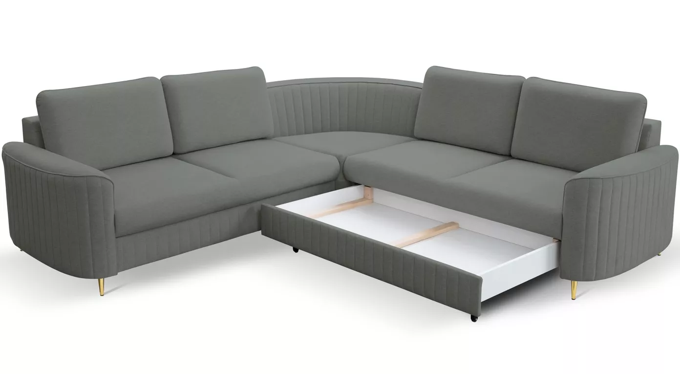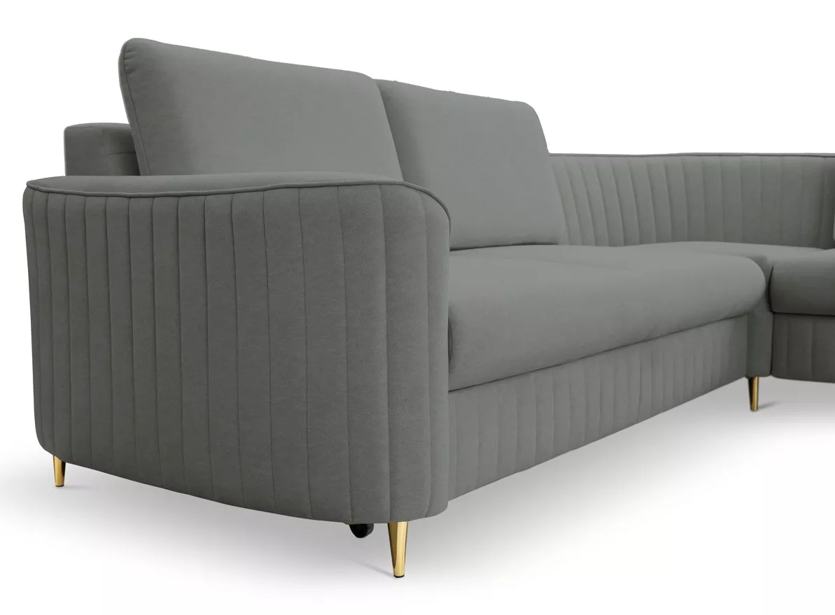 Pořiďte si skvost, který rozzáří každý interiér! Sedačka KAMPLO 2 okouzlí výrazným prošíváním, zlatými nohami a symetrickým tvarem, který působí luxusně a harmonicky. Díky rozkládací funkci a prostornému úložnému prostoru potěší i praktičností. Elegantní designová hvězda, která se stane středobodem obývacího pokoje.