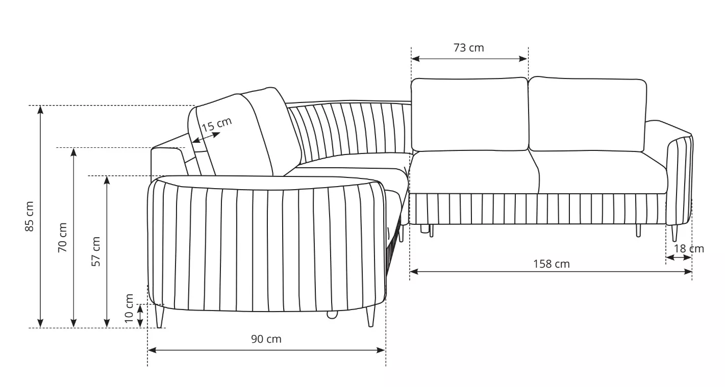 - celočalouněná: ano (potažená stejnou látkou i na zadní straně)